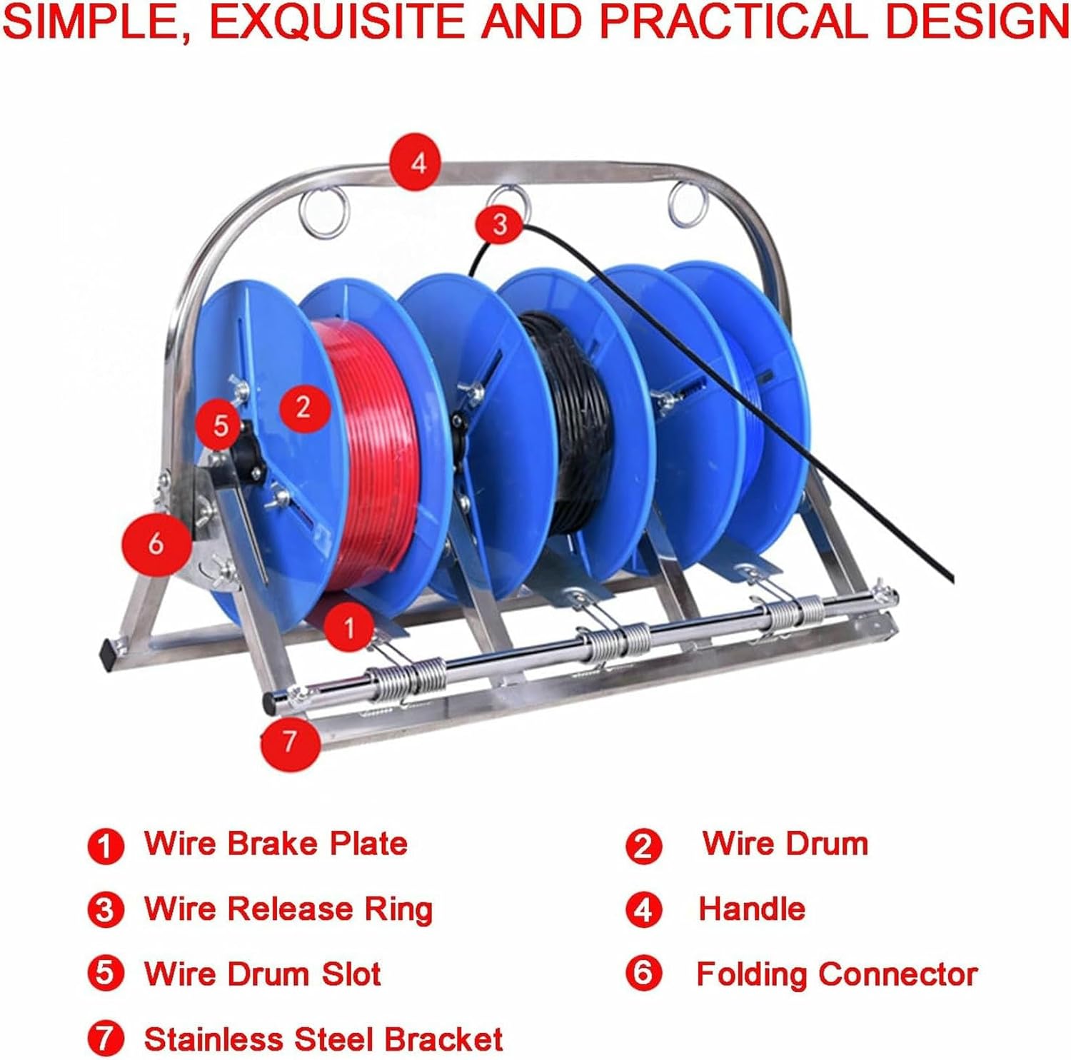 Cable pulling reel wire caddie is designed with your work in mind; Bring your spools of electrical wires to the shop, job, or warehouse; Electrical wire rack caddy allows you use both hands to unroll the spoolsWith its portable design, you can easily transport this wire rack from one job site to another, making it ideal for contractors and electricians on the go. The open-frame construction allows for quick and easy access to your wire spools, saving you time and frustration during installations and repairsSPECIFICATIONS:Product Name: Wire Spool Rack/Wire Reel Rack/Cable reel rack/Portable Cable Line Holder/Electrical Wire Spool Rack/Wire and Cable Distributor/Cable Distributor CartColor: Silver+blueMade Of: iron and nylon reelSize: 40x30x59cm/40x30x75cmSpool Size: Diameter 24.5cm / Thickness 10cmSuitable For Wire Range: ≤6 square, 100 meters wire (adjustable)Applicable Scenarios: construction sites, warehouses, Factory workshops, indoor and outdoor workplacesVarious Spools: Wire, starter wire, heat shrink tubing, cable, rope, paracord, and even decorative ribbon from florists and craft storesPACKAGING INCLUDES:Wire Spool Rack x 1KIND TIPS:1. This product only contains the cable spool stand and does not include other products in the picture. It is for prop reference only
