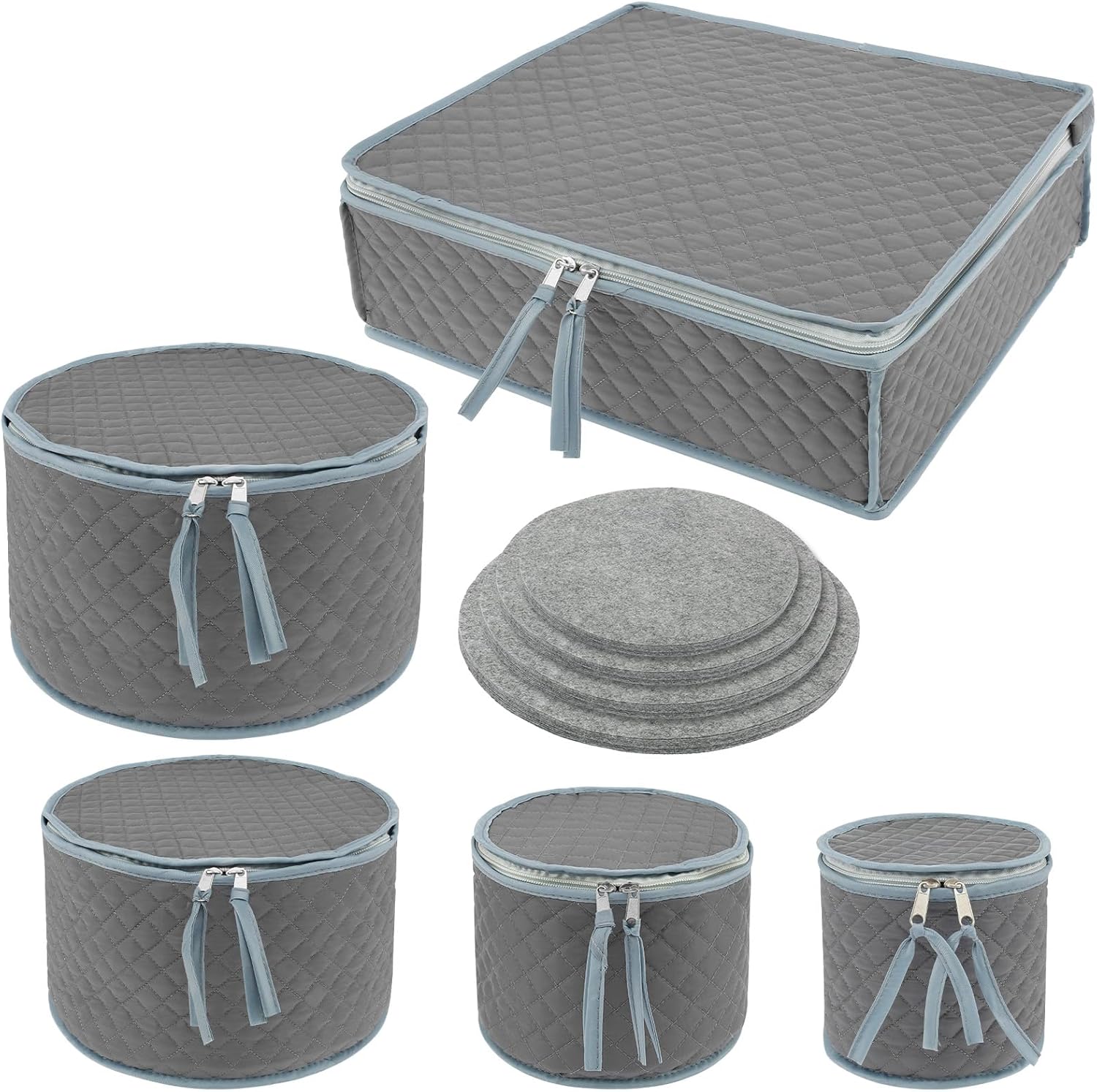 Parts List:1×Rectangular Storage Bag4×Cylindrical Storage Bags in Different Sizes48×Felt Cloth in Different SizeDescription:This dinnerware storage container is designed to protect tableware, making it convenient to carry tableware when going out and avoid dust from entering. It avoids solid protection for tableware, avoiding tableware from chipping or scratching, giving you confidence when storing or moving.Features:Dustproof: It also includes a label holder for easy identification of contents and zipper closures to keep dust out.Soft Fabric: The fabric is soft and foldable, allowing you to carry it easily when you go out, you can also know exactly what is inside.Specification:Product Name: Dinnerware Storage Container SetProduct Material: Oxford cloth quiltingProduct Size:Rectangular Storage Bag: 39×33×11 CMCylindrical Storage Bag: 30×18 CM, 20×15 CM, 25×15 CM, 17×15 CMFelt Cloth Diameter: 29 CM, 24 CM, 19 CM, 16 CMColor: GreyNotes:1.There may be slight differences between the picture and the actual color of the commodity. We will try our best to show you the exact color.2.Please allow slight dimension difference due to manual measurement.
