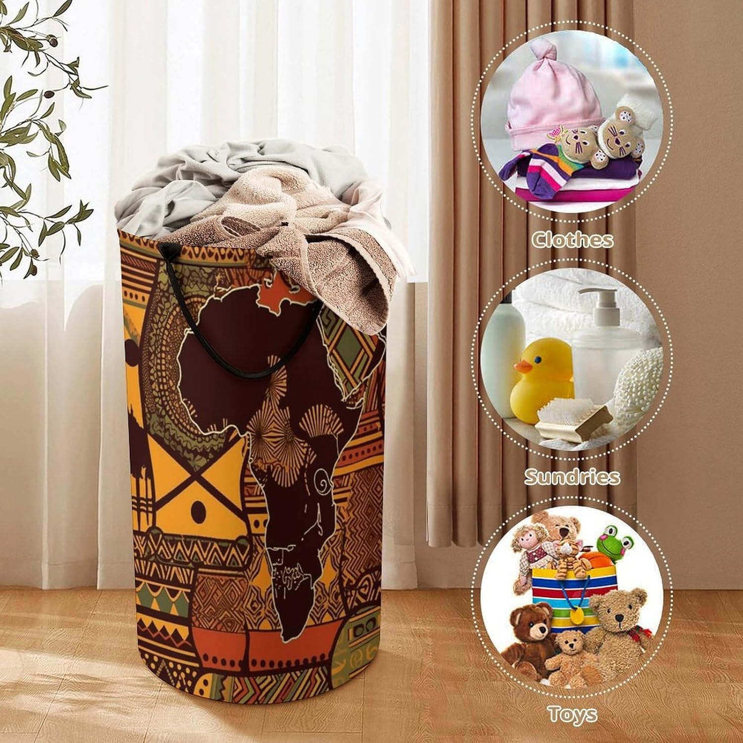 Tired of messy piles of dirty clothes cluttering your bedroom, bathroom, or laundry room? Meet our Collapsible Large Capacity Laundry Hamper, a versatile and functional storage solution designed to simplify your daily routine while elevating your home decor. Portable Washing Bin Dirty Clothes Basket for Bathroom Essentials Storage is an essential organizer for every corner of your home, from bustling family households to compact apartments, and even on-the-go adventures like camping or RV trips.With its extra-large storage space, this African Map Ethnic Pattern Clothes Hampers for Laundry with Handles and A Removable Bag, Large Foldable Laundry Hamper for Bedroom, Bathroom Laundry Room eliminates the hassle of frequent trips to the laundry room. No more overflowing baskets or scattered items, this African Map Ethnic Pattern hamper is built to handle your biggest storage challenges, making it a must-have for busy lifestyles. Large & Tall Collapsible Laundry Basket, Clothes Hamper Easy to Carry, Dirty Hampers for Bedroom, Bathroom reduces clutter, saves time, and adds a touch of organization to every room, all while being easy to store and transport.
