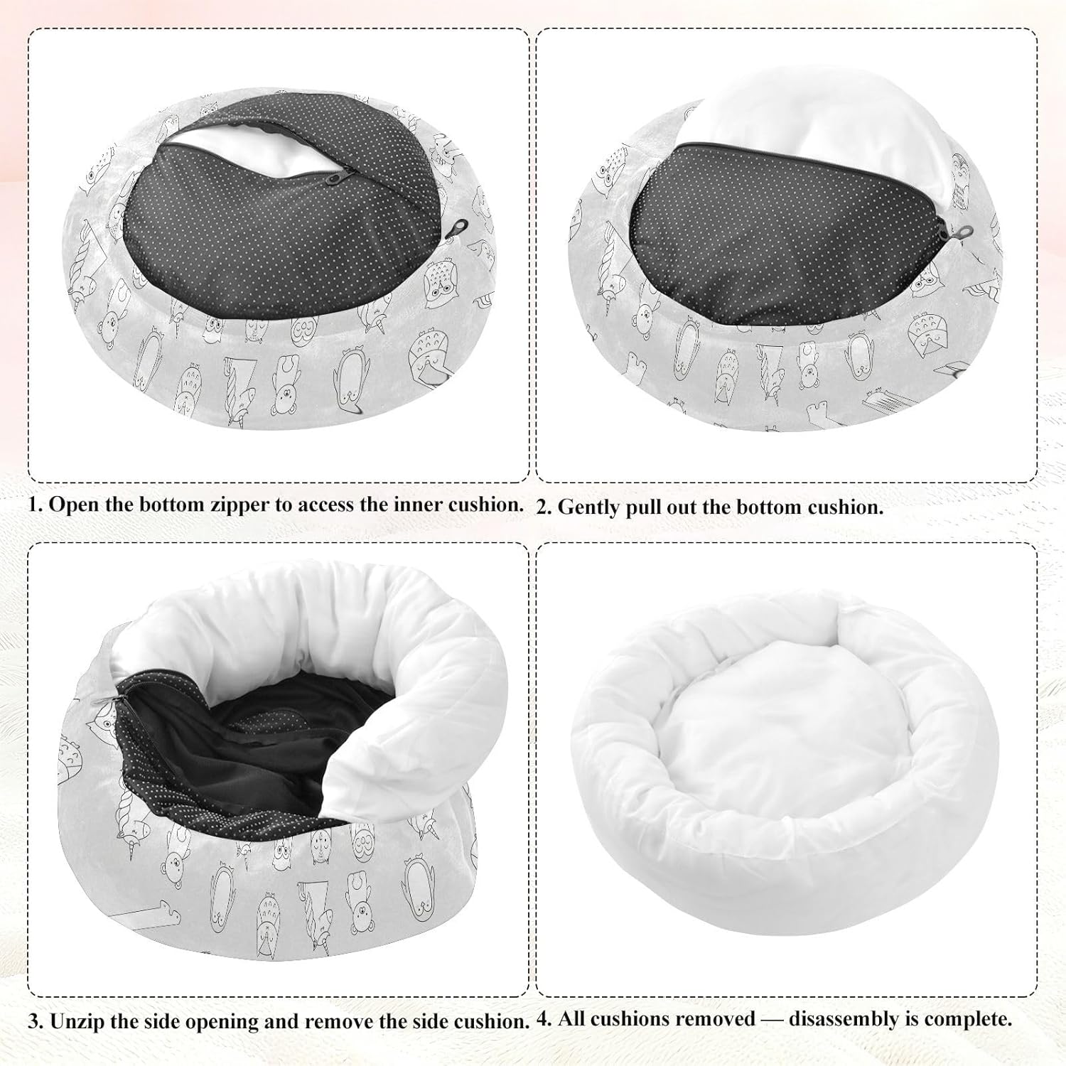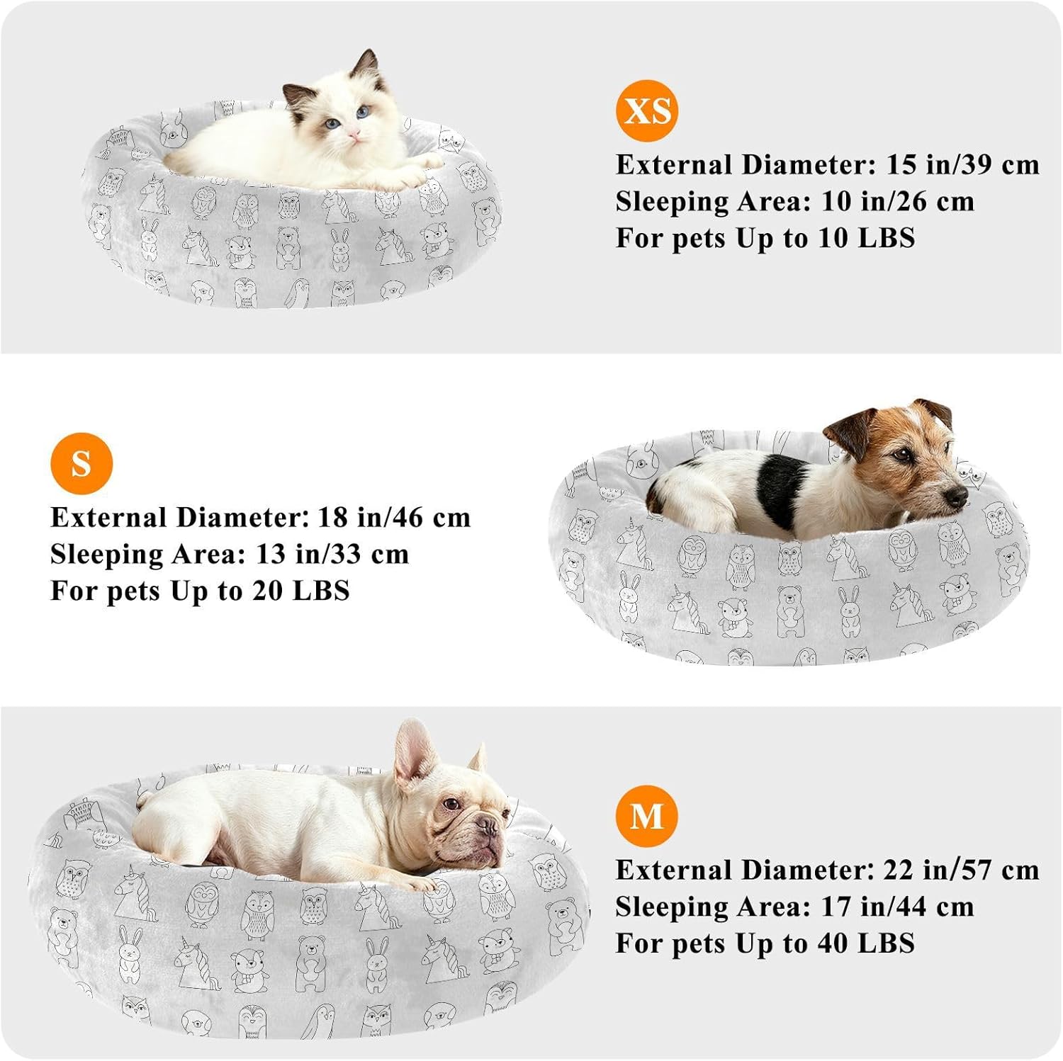 Premium Donut Pet Bed - Cozy & Secure Suitable for Your Pet Our dog beds for small dogs come in three sizes: XS: 13" inner diameter (for cats and tiny dogs) S: 15.7" inner diameter (ideal for small pets) M: 20" inner diameter (suits medium-sized pets) Comfort Materials Soft, plush polyester exterior Quality fiberfill filling Supportive yet cushiony Retains shape after compression Security Design ✓ Round donut shape for curling ✓ Raised edges for head support Practical Maintenance Features Removable machine-washable cover Non-slip dots on base Why Pets & Owners Love This Bed ✔ Provides warmth in winter months ✔ Easy to keep clean and fresh ✔ Stays in place during use ✔ Appeals to cats and dogs alike Ideal For: Indoor cats and small dogs Multi-pet households Crate or car travel Give your furry friend comfort with this pet bed for small medium dogs cats that combines security, warmth, and practical design! JU005