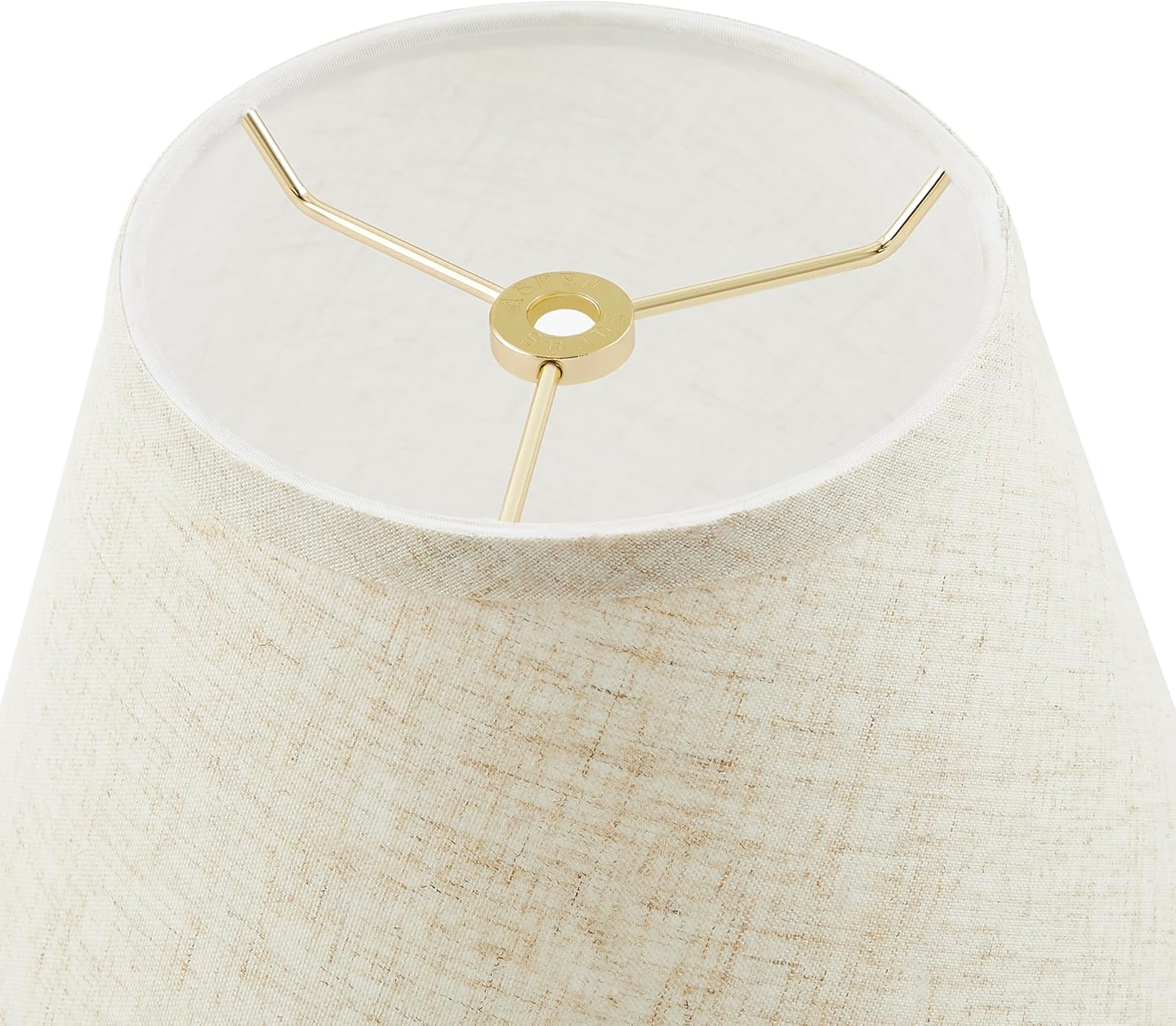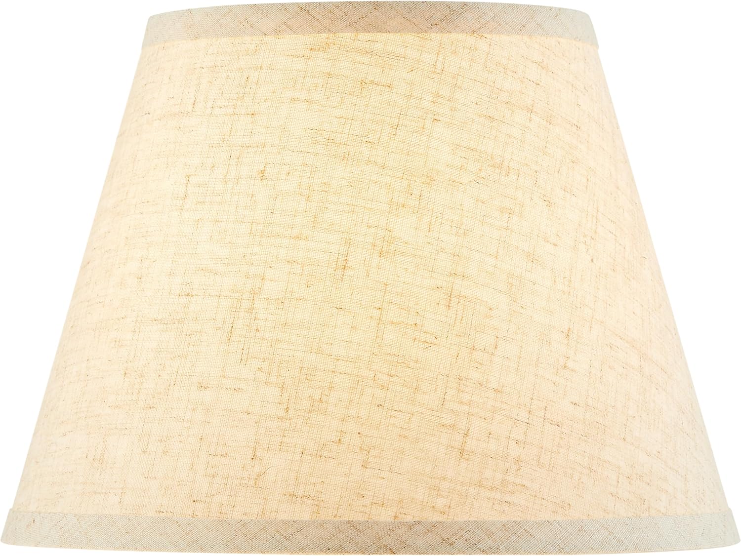 Aspen Creative offers a 1 pack empire shaped spider lamp shade in Flaxen Linen that will enhance your living space. Shade Dimensions: 6" Top x 10" Bottom x 7-1/2" Height. The shade is made with a spider construction, this allows the shade to sit perfectly centered on a lamp harp attachment. It is compatible with a saddle base, and uno slip-on base lamp harp or a bulb clip adapter. Crafted with precision and attention to detail, our lamp shades are made with high-quality materials that are built to last. They are made to withstand daily use while still maintaining their shape and beauty. This product is suitable for a wide range of lighting options including table lamps, accent lamps, vintage lamps, candle stick lamps, kid's room lamps, bedroom lamps, bedroom table lamps, night stand lamps, reading lamps, bedside reading lamps, living room end table lamps, bedroom night stand lamps, and pendant lights.