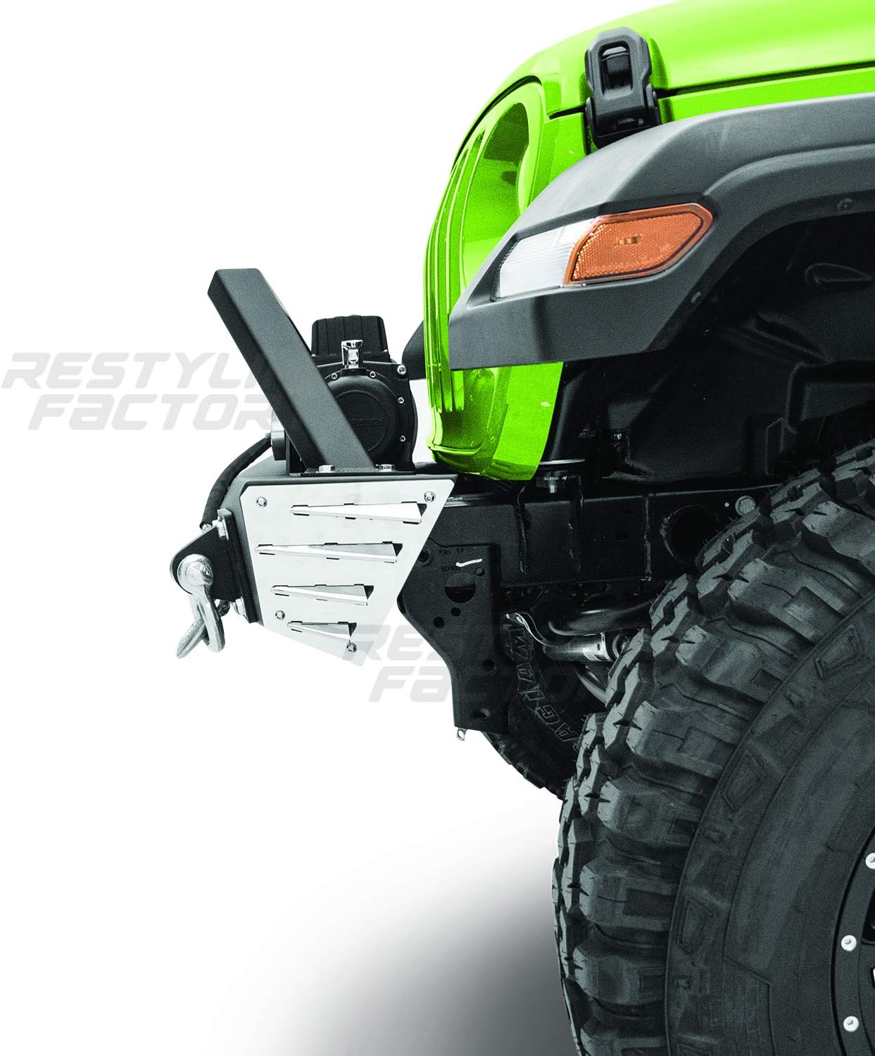 Restyling Factory -Black Textured Stubby Front Bumper With 2x D-Ring & Winch Plate Built-In 4x 3" LED Lights Mounting Tabs for 18-19 Jeep Wrangler JL
