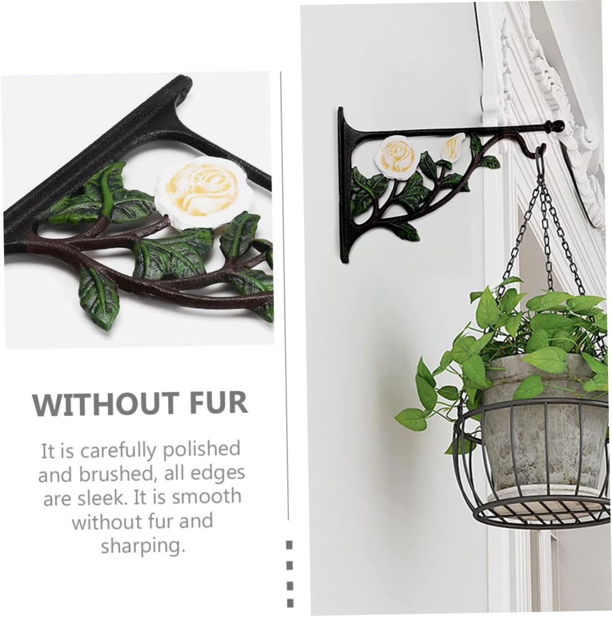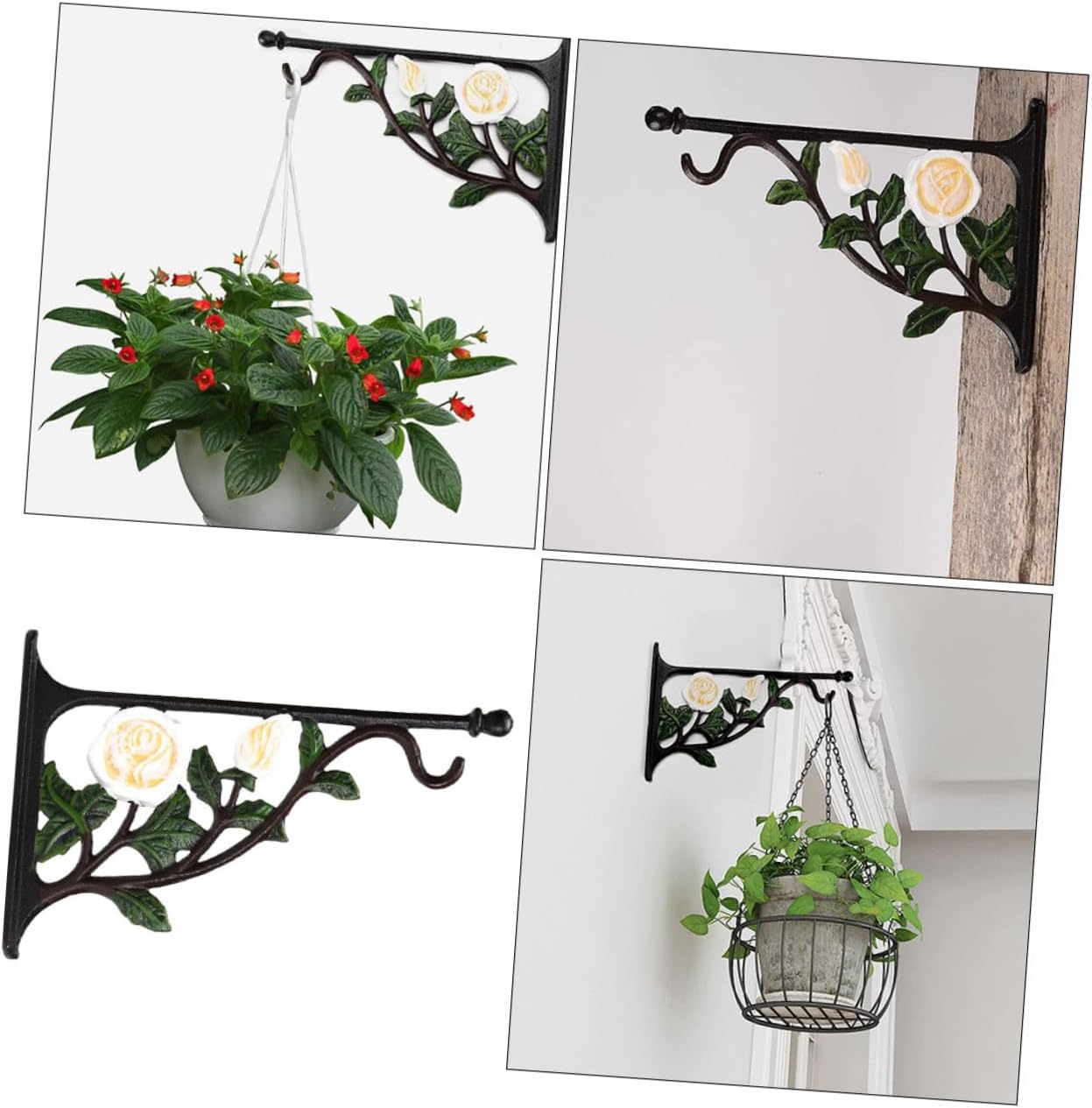 Package List 1 x Hook Features -Size: About 29.00X20.00X2.00cm/ 11.40X7.86X0.79in. -Color: As shown. -Product Info:White rose wall mount -Material: Iron. - Fit for hanging various items and getting them organized, use widely in life flower pot hanging bracket. - The vintage design of this hook adds a touch of rustic style to your home and garden hanging planter hook. - Made of iron material, very durable and reliable for a long period. - It is carefully polished and brushed, all edges are sleek without any bur Hanger for Flower Basket. - Excellent workmanship, practical and beautiful, adding a finish touch to the wall metal flower hook.Goods Descriptionbird feeder hanger Made of sturdy and durable iron material, the hanging hook has durability and excellent performance, which can serve you well.flower pot hanging bracket Add a touch of vintage beauty to your space.flower pot hanging brackets Beautify any space