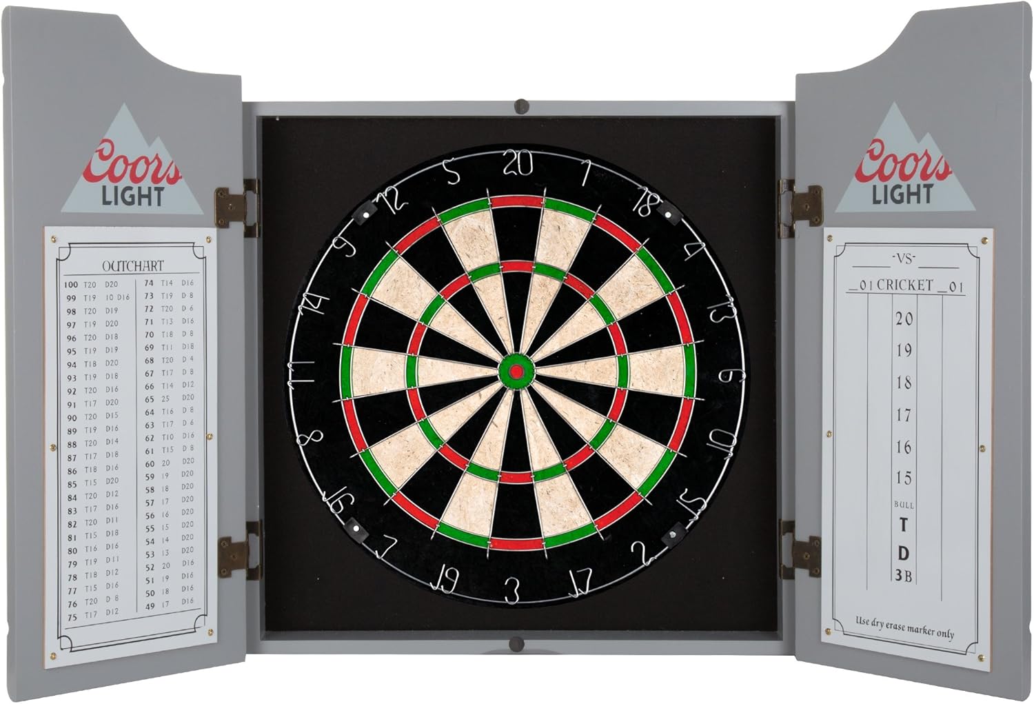 • OFFICIALLY LICENSED DARTBOARD CABINET - This dart board set features an officially licensed Coors Light logo on the front for a vibrant image, making it a great addition to your basement, garage, or game room accessories and décor.