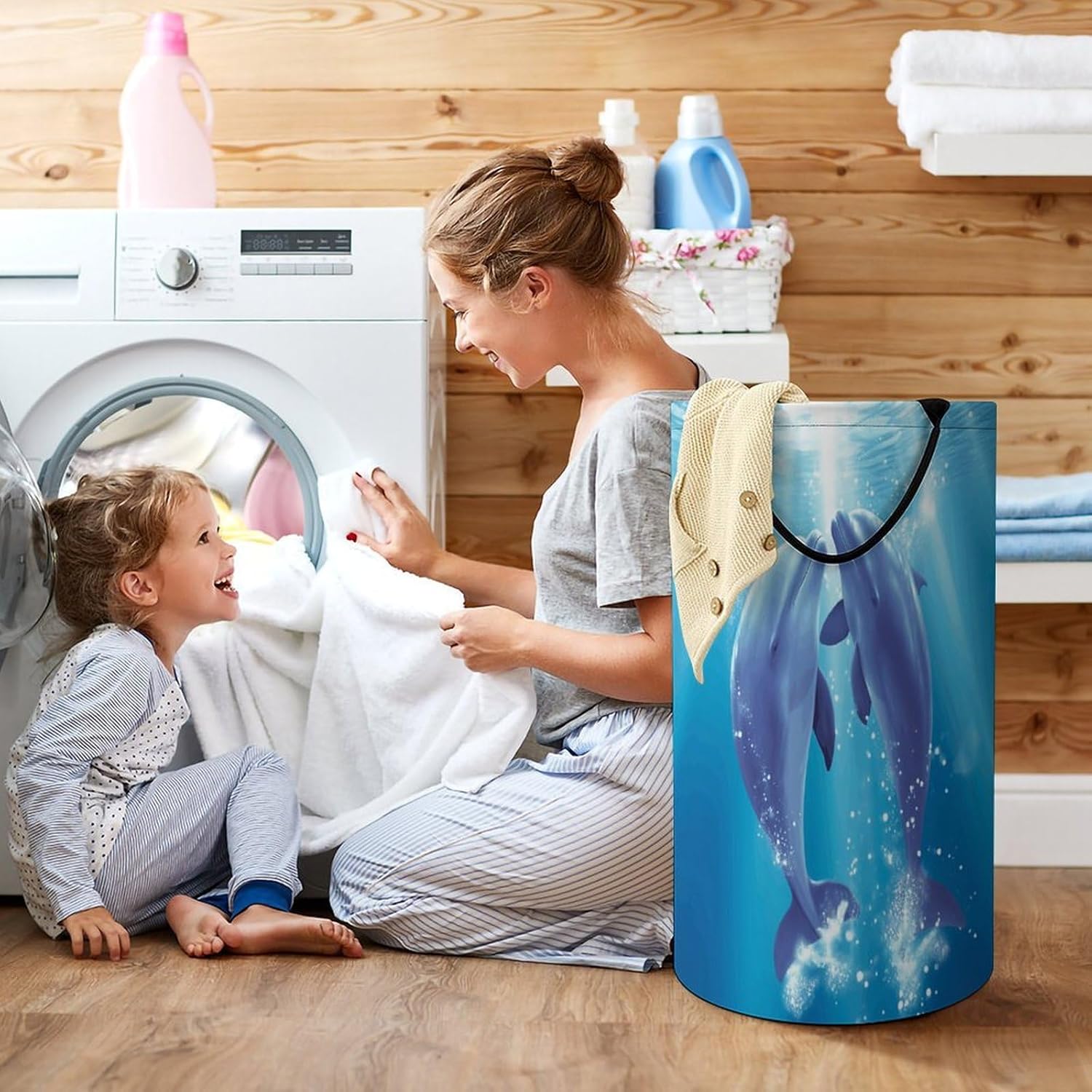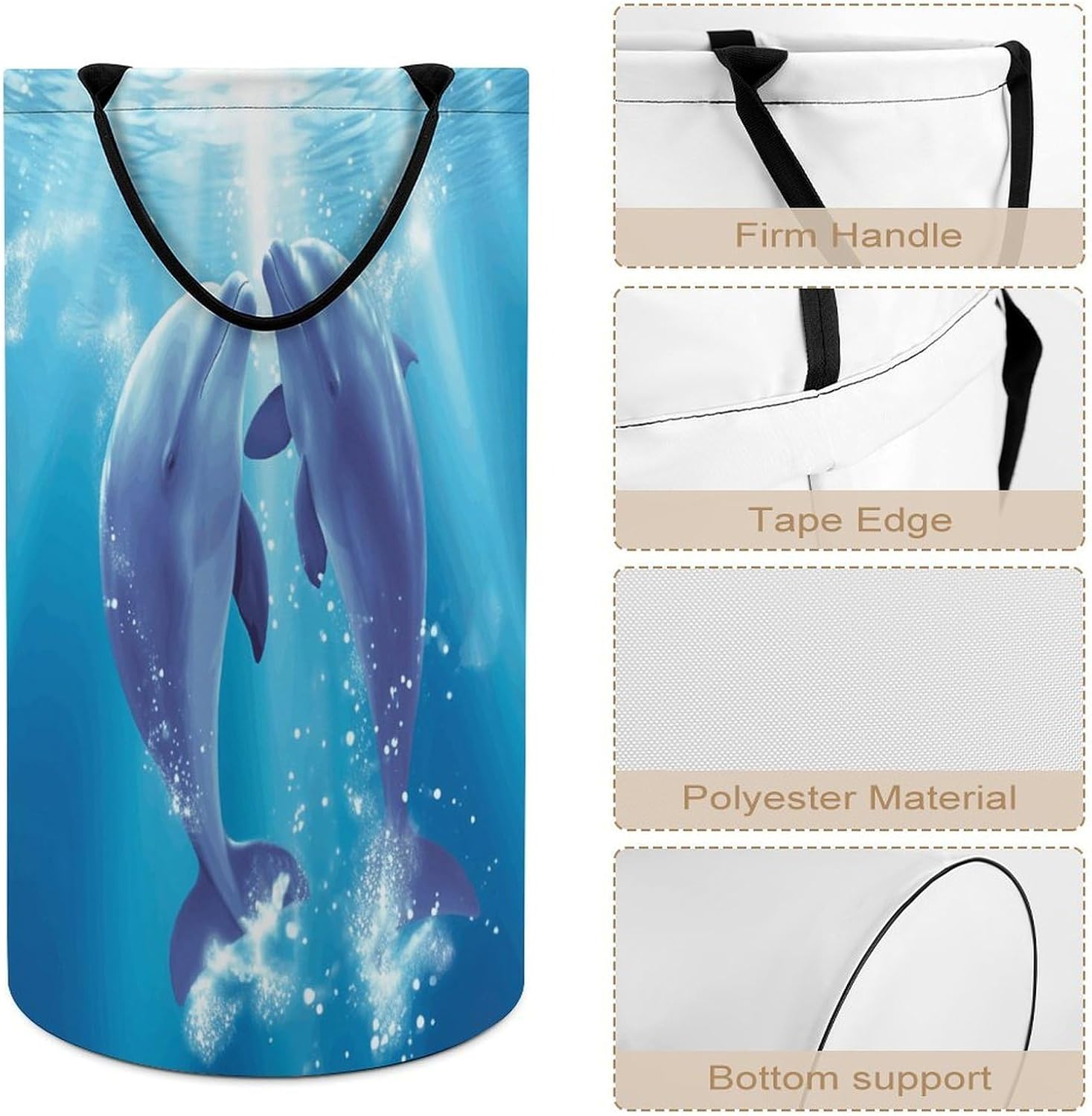 Upgrade your home organization with our Dolphins in Loveextra-large foldable laundry hamper!Made from high-density polyester,it’s built tough to resist water,humidity,and daily wear while staying odor-free,Measuring 27.2 x 15.7 inches,the spacious interior fits bulky loads think blankets,children’s toys,or a week’s worth of clothes saving you hassle.Dual reinforced handles ensure easy,stable carrying from room to room. When not in use,simply collapse it flat to stash under furniture or in tight spaces,making it perfect for apartments,travel,or dorm life.Beyond laundry,use it to tidy snacks,craft supplies,or pet items.Hand wash gently for upkeep;avoid bleach.Simplify storage with this versatile,space-saving essential!