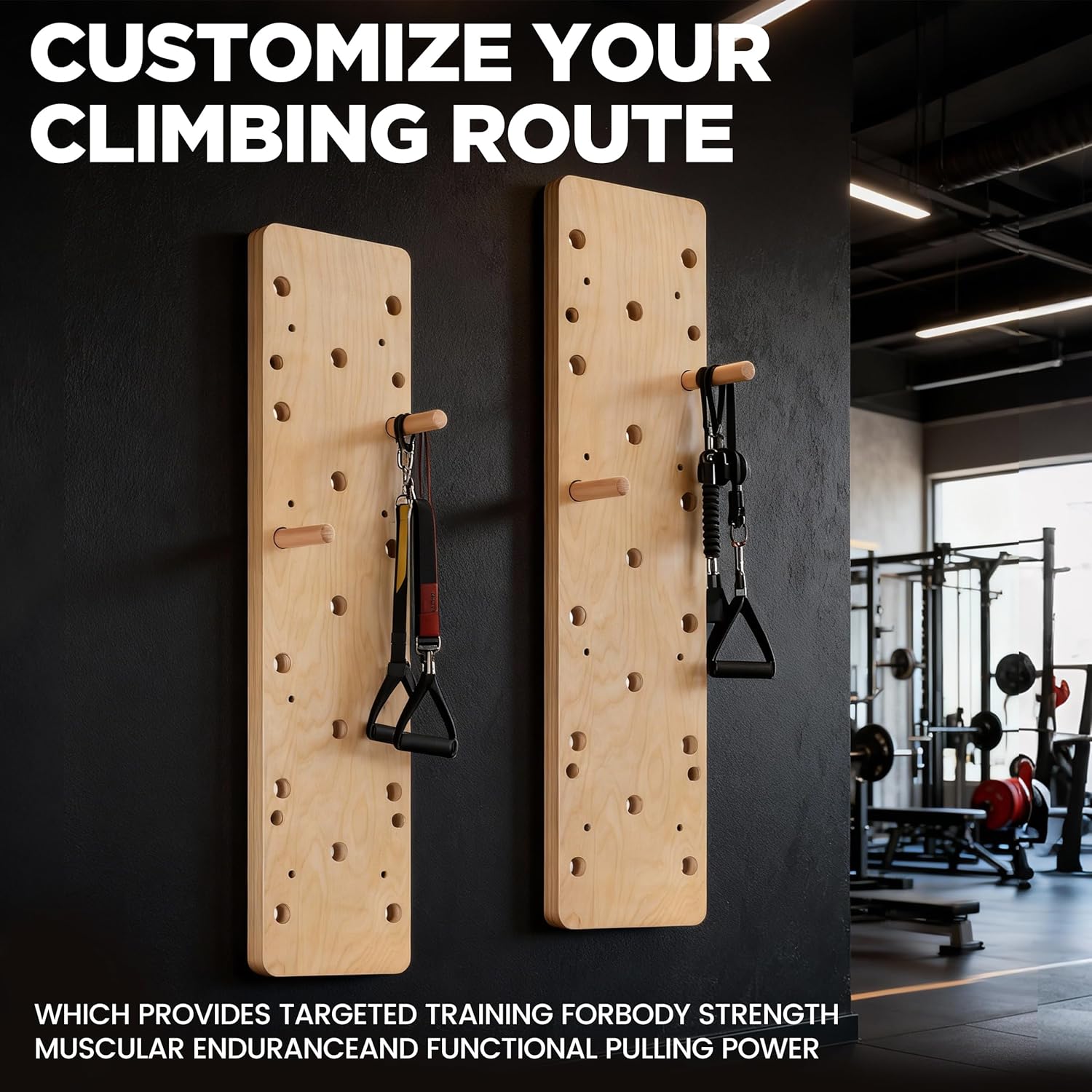 ironvib Extra-Thick Birch Climbing Peg Board for Wall Mounting, Heavy-Duty Wooden Climbing Board with Beech Grips & Rock Climbing Hold Inserts for Indoor Home Gym