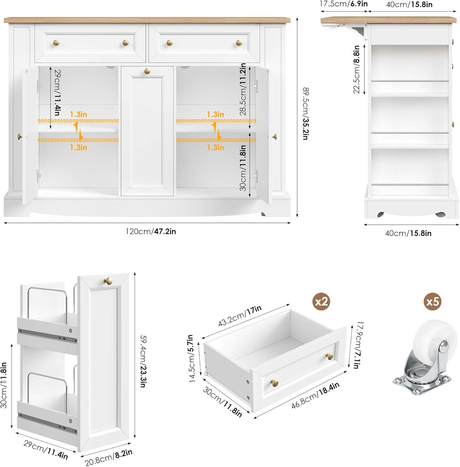 | Included Components | 1 X Kitchen Island + 1 x Instructions+ 1 x Parts Kits |