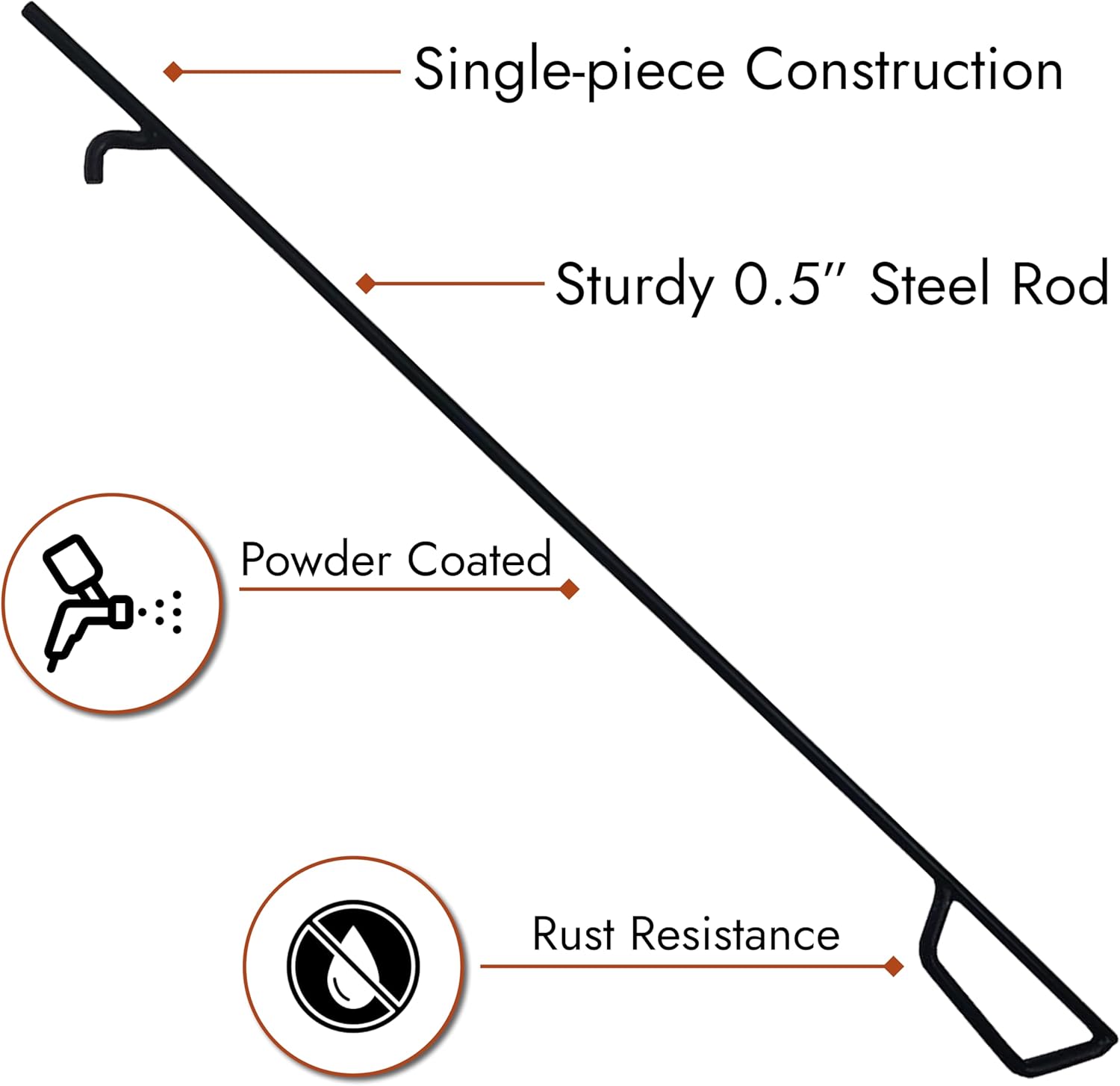 FEBTECH is providing fire poker with an extremely sturdy quality, t ❖ Excellent Craftsmanship It is crafted with a single-piece durable construction made of ½ inch round steel rod, its classic design with excellent craftsmanship is not just a beautiful piece of steel but equally practical as well. It is designed with a handle for a comfortable grip and a beautiful hook for moving and organize logs or coals. A handle is used to hang your fire poker near the fireplace or next to your fire pit when it is not in use. Its flat structure occupying a small space and is suitable for storage anywhere. ❖ Avoid Injuries & Stay Safe It is necessary to handle burning logs, without risking injuries. This campfire poker has a highly ergonomic handle to easily move firewood around the fire pit without having to worry about getting burned from the heat. ❖ Ideal Purpose Generally, poker is used to adjust the wood or coal-burning levels to maintain the free flow of oxygen around the fireplace. The fire poker used to stir up and tend the fire. It is a necessity to maintaining your fire. ║ Fire Poker ║ ► Full Length: 36” ► Rod Diameter: 0.5” ► Handle Length: 5” ► Inside Handle Width: 1.75” ☻ Note: All dimensions are approx. but actual product purpose does not change.