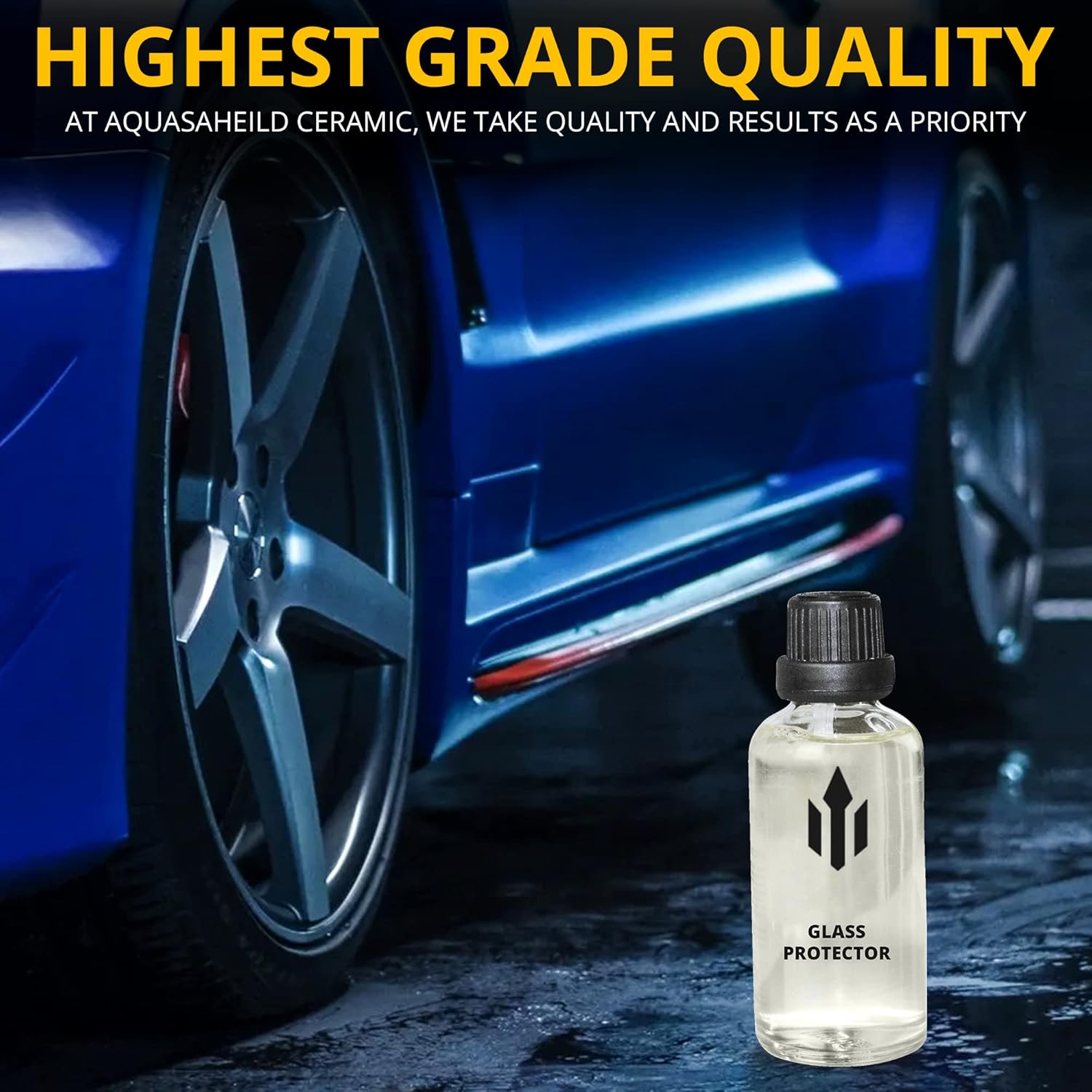 AquaShield Auto Glass Treatment is specially formulated and tested for automotive glass.