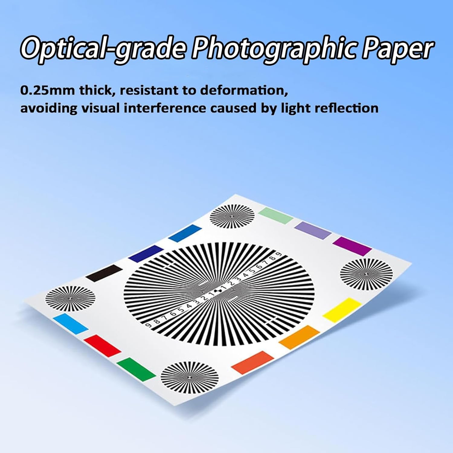 Product Parameters: Product Name: Professional Camera Focus Adjustment Card Material: High-Quality Photo Paper Size: 400 * 300mm (15.75 x 11.8 inches) Type: Reflective Type Thickness: 0.25mm Calibration Accuracy: ±5μm Production Process: High-Precision Spray Coating Technol Package List: Camera Focus Adjustment Card *1