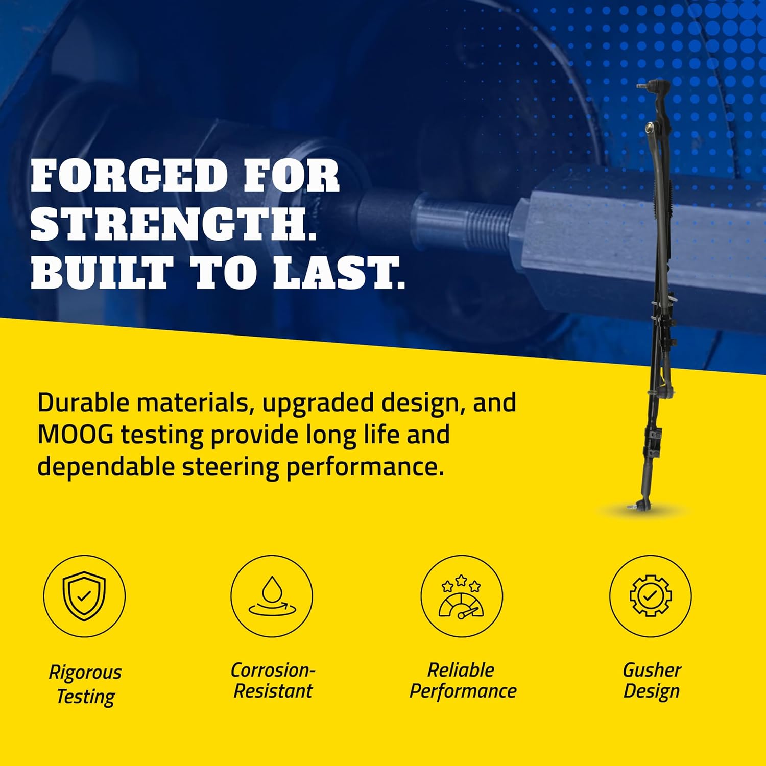 The DRiV MOOG Front Suspension Stabilizer Bar Link is an advanced steering linkage assembly engineered to restore precise control and road stability to your Dodge Ram. Designed as a complete front end repair kit, it includes all necessary tie rod ends, a pitman arm upgrade, and a steering stabilizer kit for a modernized, T-style linkage conversion. With this all-in-one solution, you benefit from significant alignment aid assembly, making installation straightforward and saving time compared to sourcing individual components. This durable steel assembly is manufactured to meet rigorous quality standards, supporting your vehicle’s steering on highways and tough terrains alike. This long lasting linkage system is built with a patented socket preload assembly, incorporating a pressed-in cover plate and Belleville washer to ensure consistent torque throughout the life of the part. The metal to metal bearing design, known as MOOG's problem-solver gusher bearing assembly, allows grease to flow through the bearing surface, reducing friction and extending service intervals. The greaseable socket is rust resistant, helping flush out debris and inhibit corrosion, further enhancing the durability of the suspension aid assembly. Precision tolerances and pre-assembled components enable easy, accurate installation, ensuring your steering repair assembly fits perfectly right out of the box. As one of the world’s leading designers, manufacturers, and marketers of automotive products for aftermarket customers, what DRiV makes matters. How we show up and compete in the marketplace matters. Our business performance matters. But the thing that matters most is what we stand for together—what we value. Our values include Radical Candor, Simplify, Organizational Velocity, Tenacious Execution, and Win. With a dependable history, you can count on DRiV to deliver what matters.