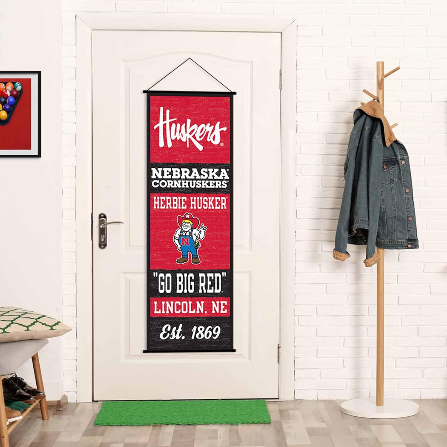 This Flag, Banner or Pennant has an overall dimension of roughly 17.5" wide by 48" in length. The "Ready to Hang" banner is made of 300D Thick Polyester and has a fabric width of 16" x 48". The top and bottom PVC banner poles are included and each measure 17.5" wide and have a diameter of .75 inches. In addition, a sturdy black hanging cord is included. Our large Wall Banners are Officially Licensed by Team, College, or University and the single-sided Screen Printed logos are Viewable on One Side. This banner is high quality decor which can be used as canvas art, poster, or sign for any room, wall, door, and a perfect gift idea for alumni, graduate, or incoming freshman.