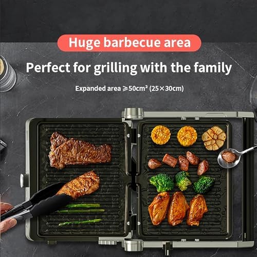 Specification: Product Name:Electric Sandwiches Maker Materials: Aluminum, Iron, Stainless Steel Rated power: 2000W Product Size:13.55"D x 13.95"W x 6.48"H Rated frequency: ~50Hz Product net weight: 4kg Temperature control method: independent upper and lower temperature control + controllable grilling time Package Iist: 1 * Electric Panini Press Grill