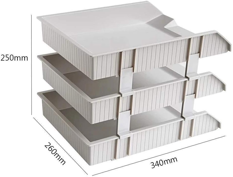 : Letter Tray / Document TrayMaterial: PS materialNumber of floors: three layersSpecifications: 260 * 340 * 250mmApplication: office student homeColor: grey: Business Office Organizing BookshelfProduct description:Strong and , not easy to deform;Foot pad design, can prevent slip and prevent wearIndex label design, clear classification;Suitable for organizing and storing personal folders, magazines and product catalogs, etc.We ingeniously utilize space and multi-functional storage space to create a workspace that maximizes your work efficiency. A tidy working environment can improve your mood, enhance work efficiency and ultimately increase your sense of happiness