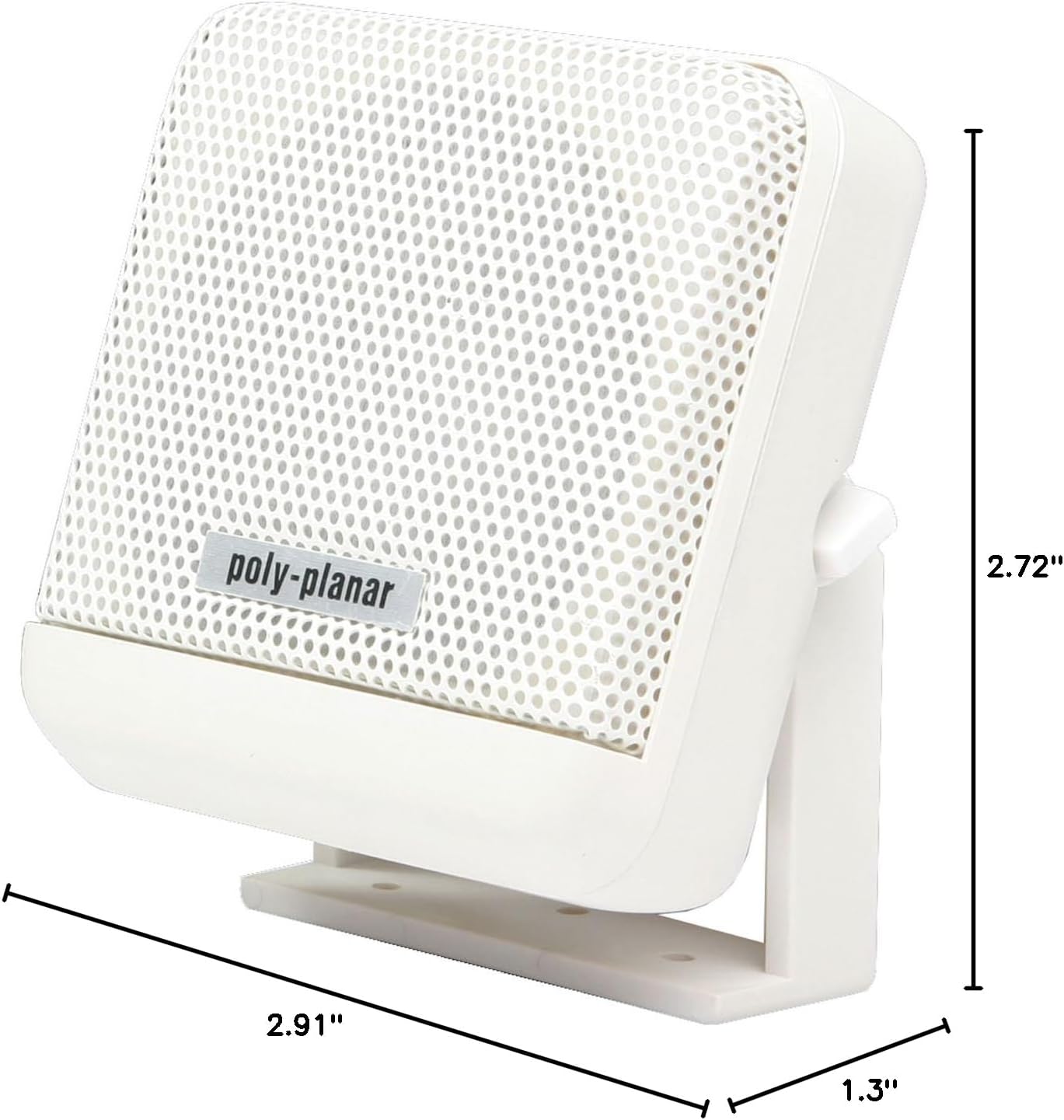 VHF Extension Speakers Surface Mount. Part Number: MB-41W . A stand-alone 4" VHF extension speaker thats completely waterproof, with stainless steel grill and mounting bracket, ABS housing and polypropylene cone. 10W Maximum Power Handling. Comes equipped with a 10 lead wire and mini-plug. Features: Completely waterproof and corrosion-proof. Features stainless steel grills, sturdy plastic frames, polypropylene speaker cones and teflon-coated wires. Ideal for use as a VHF remote. Available in black or white color speaker. Specifications: Peak Power Handling: 20W/pair. Speaker Impedance: 4 ohm. Frequency Range: 1K to 10K Hz. Weight: 1.05 lbs per Speaker. SPL: 83 dB+/-3 dB. Overall Dimensions: 2-15/16" x 2-0.75" x 1-5/16" (74mm x 69mm x 33mm).