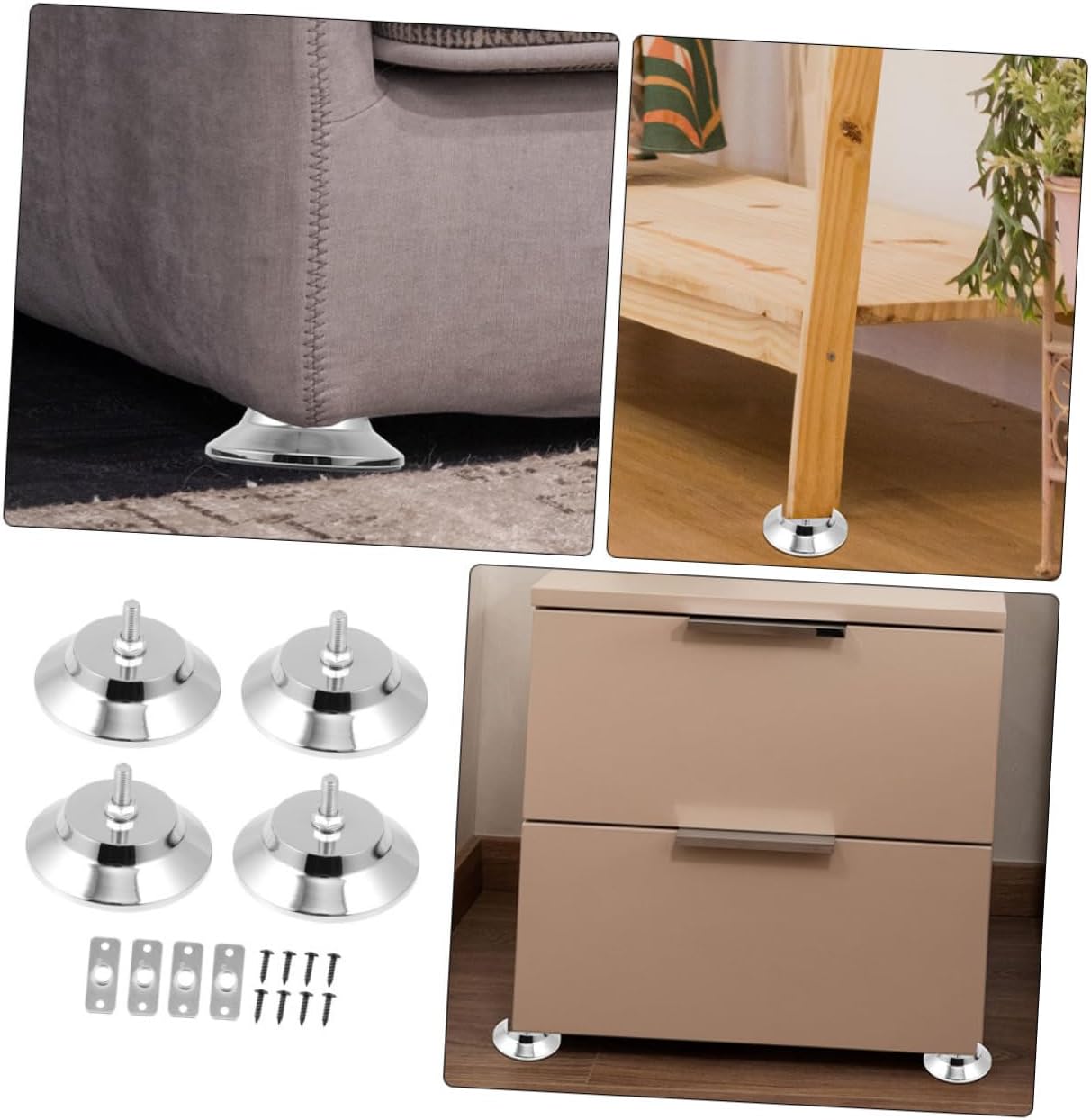 Package List 4 x Cushions 4 x Rings 8 x Screws Features -Ensures a stable playing surface with its antislip design: the anti-slip design of this product ensures a stable playing surface, preventing the table from sliding or moving during gameplay protective pad for pool table leg. -Color: table foot accessory -Size:12.50X12.50X7.00cm/4.91X4.91X2.75in foosball table lifting mat - the height of your table legs for optimal gameplay: with this product, you can easily adjust the height of your table legs to achieve the playing surface for your game table leg cushion. -Specifically designed for pool tables: this product is tailor-made to fit pool tables, ensuring a fit and optimal gameplay experience simple floor protector. -Material:Iron adjustable table leg cushion -Crafted from stable materials for use: this product is made from metal materials, ensuring durability and use pool table leg adjustment pad. -Size:5.00X2.00X0.30cm/1.97X0.79X0.12in pool table leveling padsGoods Informationadjustable foosball table foot pad The foot pads not only provide stability but also protect your floor from any potential damage.pool table accessory Crafted from metal materials, this accessory is built to last.pool table foot pad This accessory allows you to fine-tune the height of your table legs for optimal gameplay.pool table leveling pads The anti-slip design ensures that your table stays in place, even during the intense matches.table supplies Enhance your pool table experience with the Pool Table Adjustable Foot Pad