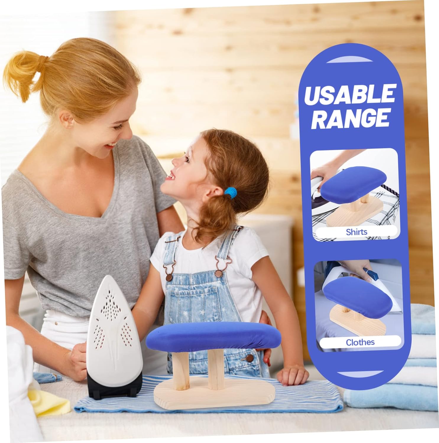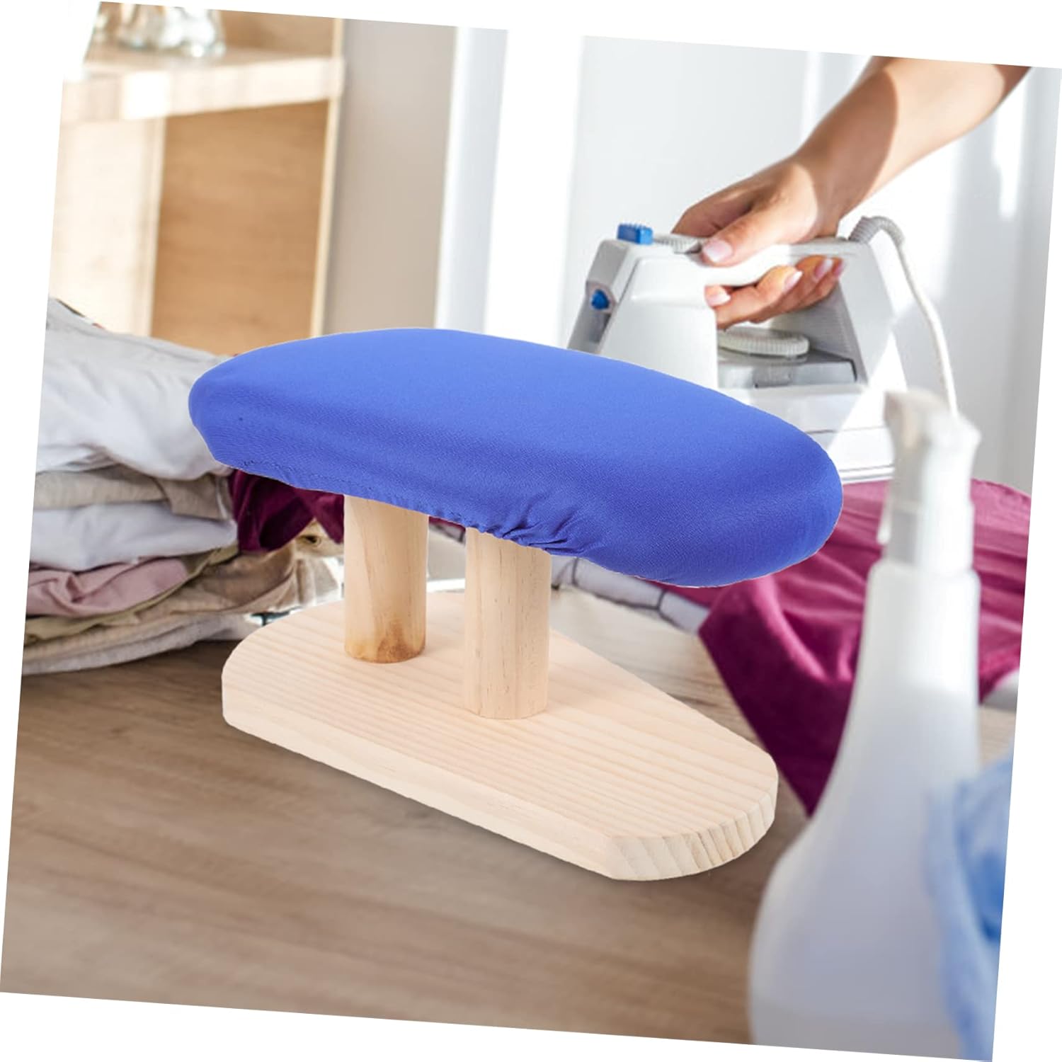 Package List 1 x Ironing Stool Features - Material: Cloth, wood Ironing Stool Accessory - Size: 27.00X17.50X17.00cm/10.61X6.88X6.68in ironing mats table top -Product Info:Ironing board - This tabletop ironing board has a thickened wooden base for support, and you can do the ironing without any concern heat resistant cloth for ironing. - The base is stable and can fix the clothes to prevent you from being injured during ironing foldable. - ColorBlue ironing accessories - Ironing Board has a simple design, but very practical in use, giving you a household ironing pad. - Made of cloth, wood which features with stability and durability, very hard and smooth for usage ironing board padding. - Very suitable and practical for use with a garment steamer or as a needle plate for tailoring table ironing board.Goods DescriptionIroning Table This is an ironing board, can iron your sleeve cuff, neckline, collar, leg opening, offering you delicate details when you are busy with interview, business talk, formal meeting.ironing sleeve board Come and take Ironing Stool home!