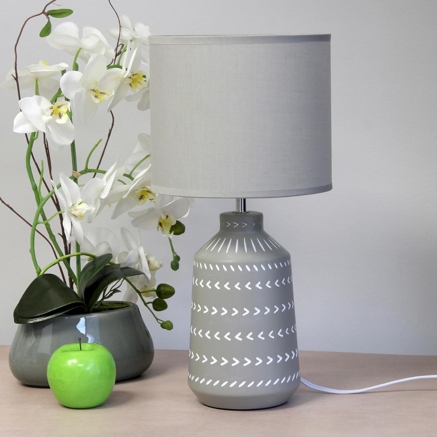 Infuse your space with a touch of modern boho elegance using this stunning patterned ceramic table lamp. Crafted with a beautifully detailed tribal -inspired patterned base, this lamp creates captivating texture and visual interest for anyone looking to blend earthy style with contemporary flair. The intricate hand painted patterns and artisan-style finish create a bold statement, while the soft linen fabric drum shade casts a warm, ambient glow ideal for cozy evenings. Whether you are styling a bedroom, living room, home office, dorm, or entryway, this compact and versatile lamp adds charm, personality, and functionality to your décor. The neutral and trend-forward color options make it easy to mix and match with any interior palette.