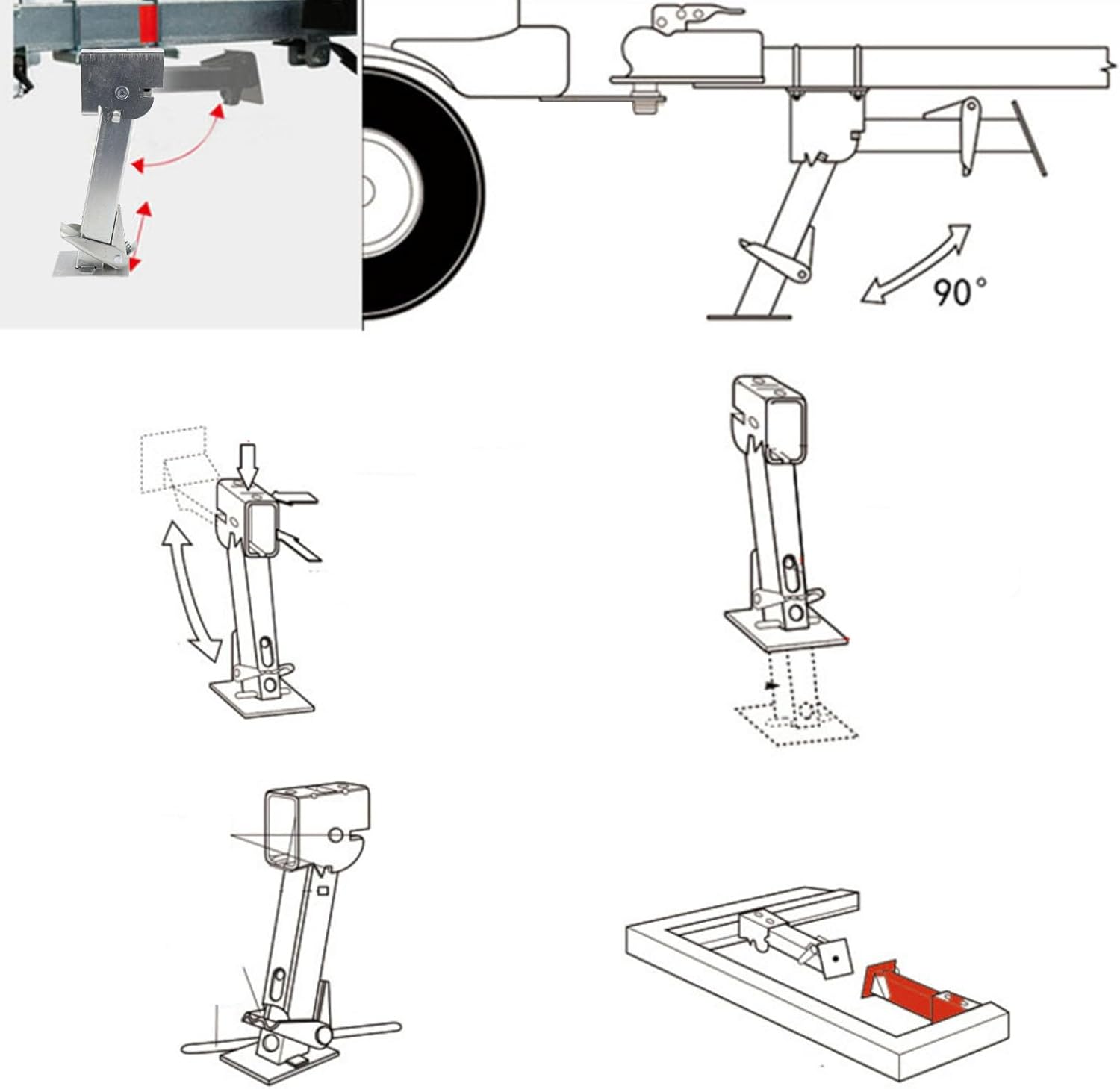 1. [HIGH STRENGTH MATERIAL] Built from durable iron, this stabilizer jack can withstand tough weather conditions for long-lasting parking safety. 2. [HEAVY DUTY SUPPORT] With a 650lbs load-bearing capacity and 1000lbs lifting capacity, it provides strong support and stability for your trailer or RV. 3. [ADJUSTABLE HEIGHT] The telescoping design allows for heights from 290mm to 455mm with a 165mm lifting capability, perfect for various height requirements. 4. [COMPACT DESIGN] Featuring a swing down mechanism, it folds easily for convenient storage and is ideal for travel and outdoor use. 5. [VERSATILE APPLICATION] Suitable for trailers, campervans, cargo trailers, RVs, and more, offering versatility for a wide range of uses. Specification: Item Type: Stabilizer Jack Support Capacity: 650lbs Lifting Capacity: 1000lbs Adjustable Size: Approx. /11.42-17.91in, Lifting 165mm / 6.5in Closed Height: Approx. 290mm / 11.42in Fitment: Suitable for RV, Trailer, Off Road Vehicle, Campervan PackageList: 1 x Stabilizer Jack