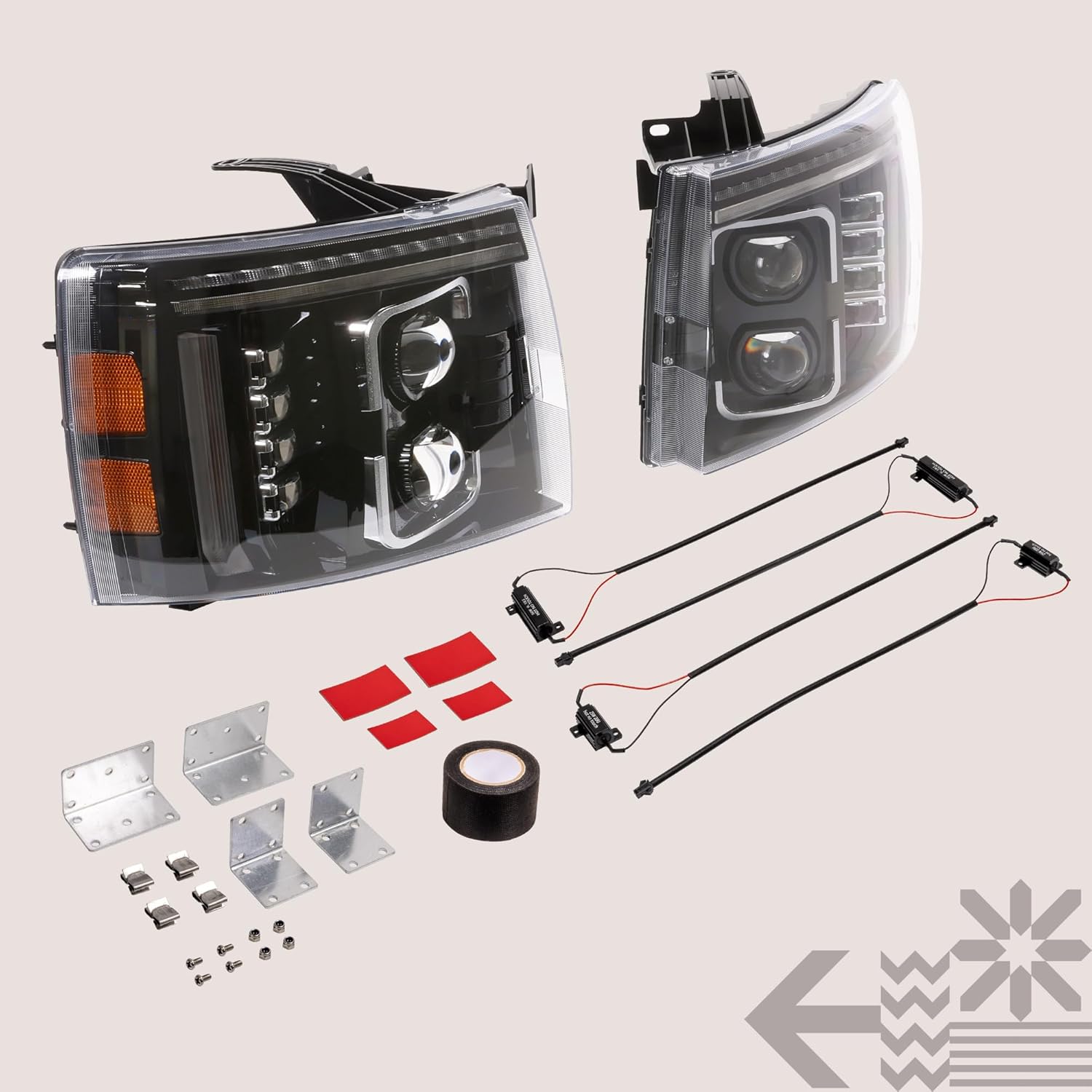 | Additional Features | Plug and Play DOT Approved High Low Beam with Z-Cutoff, Sealed LED Projector, DRL, Amber Sequential Turn Signal Blinker and Side Markers |