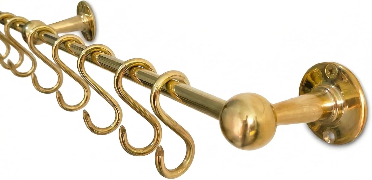 Bring both function and timeless character to your kitchen with this unlacquered solid brass hanging pot rail. Designed to organize pots, pans, and utensils while serving as a striking design feature, this wall-mounted pot rail blends craftsmanship with everyday practicality.