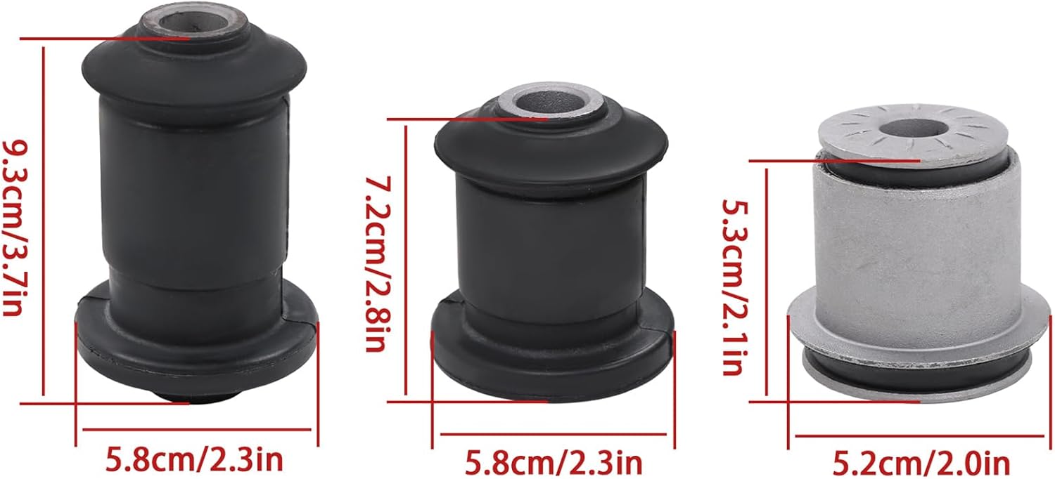 Fitment:Replacement for Cadillac Escalade 2002-2006Replacement for Chevy Avalanche 1500 2002-2006Replacement for Chevy Avalanche 2500 2002-2006Replacement for Chevy Express 1500 2003-2011Replacement for Chevy Express 2500 2003Replacement for Chevy Silverado 1500 2001-2006Replacement for Chevy Silverado 1500 Classic 2007Replacement for Chevy Silverado 2500 1999-2011Replacement for Chevy Silverado 2500 Classic 2007Replacement for Chevy Silverado 3500 2007-2011Replacement for Chevy Silverado 3500 Classic 2007Replacement for Chevy Suburban 1500 2000-2006Replacement for Chevy Suburban 2500 2000-2011Replacement for Chevy Tahoe 2000-2006Replacement for GMC Savana 1500 2003-2011Replacement for GMC Savana 2500 2003Replacement for GMC Sierra 1500 2001-2006Replacement for GMC Sierra 1500 Classic 2007Replacement for GMC Sierra 2500 1999-2011Replacement for GMC Sierra 2500 Classic 2007Replacement for GMC Sierra 3500 2007-2011Replacement for GMC Sierra 3500 Classic 2007Replacement for GMC Yukon 2000-2006Replacement for GMC Yukon XL 1500 2000-2006Replacement for GMC Yukon XL 2500 2000-2011Replacement part number:K6658, K6688Package includes: 4 x Front Upper Control Arm Bushing4 x Front Lower Control Arm BushingImproving handling performance:This kit helps improve the vehicle's handling performance by maintaining the correct position of the wheels. This allows the driver to have more precise control over the vehicle, especially during high-speed driving or emergency avoidanceNote: Please check the product model before purchasing, and also check the product pictures and information to ensure that the correct product is purchase