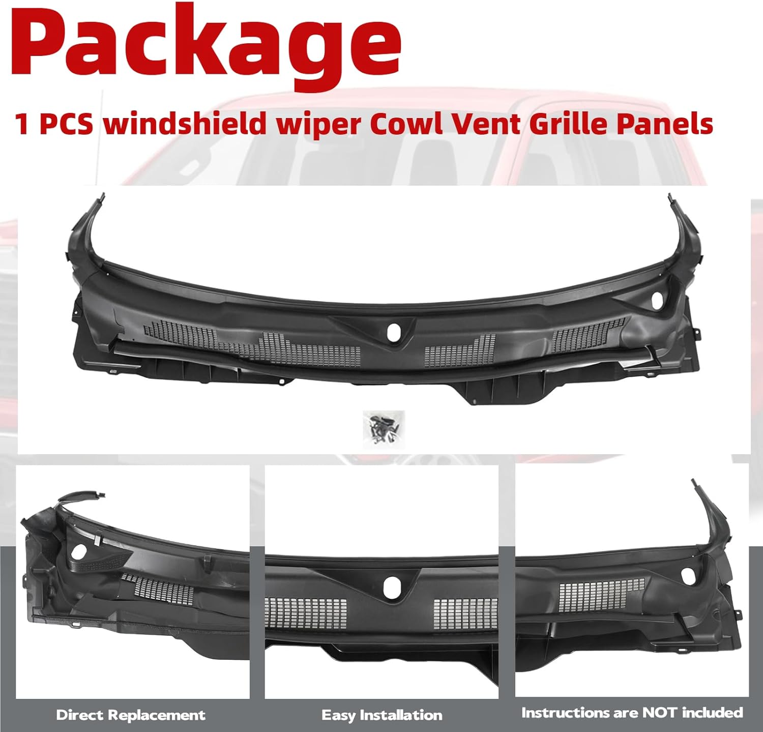 Front Grille Wiper Cowl Windshield Panel For 2009-2024 Dodge Ram 1500 2500 3500 Fitment:For 2010 Dodge Ram 2500 Laramie, SLT, STFor 2010 Dodge Ram 3500 Laramie, SLT, STFor 2009 2010 Dodge Ram 1500 Laramie, SLT, STFor 2011-2018 RAM 1500 Big Horn, Laramie, Laramie Longhorn, SLT, Sport, TradesmanFor 2011 -2018 RAM 2500 Laramie, Laramie Longhorn, Power Wagon, SLTFor 2011-2018 RAM 3500 Laramie, Laramie Longhorn, SLTFor 2019 2020 2021 2022 2023 2024 Dodge Ram 1500 Ram 1500 Classic Tradesman, Warlock(If you are not sure if the item fits your vehicle, please contact us first and provide the VIN Number and Picture of your vehicle, so we can check it for you.) *Package Included:1Pc Top Windshield Cowl Grille *Specification:Type: Front Wiper Cowl Windshield PanelOE/OEM Partnumber:55112305AD Material: Plastic ABSFitment Type: Direct ReplacementPlacement on Vehicle:Front Style: OEM styleReplaces/Interchange Part Numbers:55112305AB, 55112305AC*Features:100% Brand New, OEM Fitment and Quality at Decent Price!Comes As 1 Separated PiecesMade of Durable & Light-Weight Plastic MaterialBring a More aggressive Front End to Your Car ImmediatelyProtect Bumper From Scratching & Improve Sporty Appearance All at Once*Installing Template is NOT Included, Professional Installation Is Highly Recommended*