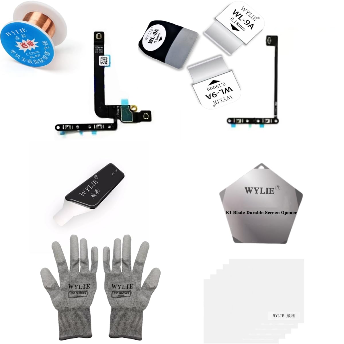 Volume Flex Cable Replacement Kit for iPad Pro 11 3rd Gen 2021 WiFi and Cellular Both 2PCS Flex Cables Compatible with WYLIE ESD Gloves Screen Opener from Professional iPad Pro Repair Kit WYLIE Tools 11 Pack โคProduct Description: ๐ โโฟ - Restore full functionality to your iPad Pro 11 3rd Gen 2021 with this comprehensive volume button flex cable replacement kit;๐ โโฟ - Compatible with both WiFi and Cellular models, this professional-grade repair package includes two precision-engineered flex cables that ensure seamless integration with your device;๐ โโฟ - The kit comes equipped with specialized WYLIE ESD protective gloves to prevent static damage during repairs, plus a durable screen opener tool for safe device disassembly;๐ โโฟ - Perfect for both DIY enthusiasts and repair professionals, this complete 11-piece set provides everything needed for a successful volume button repair;๐ โโฟ - The flex cables are meticulously designed to match original specifications, guaranteeing proper fit and operation;๐ โโฟ - The included professional-grade tools help facilitate careful handling of your iPad's components during the repair process. Whether you're working with the WiFi or Cellular version, this kit delivers the essential components and tools needed to restore your iPad Pro's volume control functionality.๐ฆโคPackage Contents: โฟ- 2x Pack of Volume Flex Cable Replacement Kit for iPad Pro 11 3rd Gen 2021 WiFi and Cellular Both 2PCS Flex Cables;โฟ- 1x PCS of WYLIE name card PVC fine frosted plastic material removing screen functional card;โฟ- 1x PCS of WYLIE WL-5A Solder paste scraper dismantling machine piece non destructive tin scraping slice;โฟ- 1x Pair of WYLIE ESD BGA repaire soldering working antiskid new environmental protection carbon fiber gloves;โฟ- 1x Pack of WYLIE 5PCS High temperature resistance thermal pads screen insulation sheet for iPhone 11-17 Pro Max Plus;โฟ- 1x PCS of WYLIE WL-002 Superfine silver jump wire 0.02MM copper wire ultra fine fly line for iPhone fingerprint mainboard chip repair;โฟ- 3x PCS of WYLIE WL-9A Dismantling Blade for iPhone iPad Domestically Produced Curved Mobile Phone LCD Screen Dismantling Tool;โฟ- 1x PCS of WYLIE K1 blade durable screen opener with 5 different depth corners tear down and flake opening pry tool for iPhone for Android Huawei Oppo iPad Macbook screen tool.