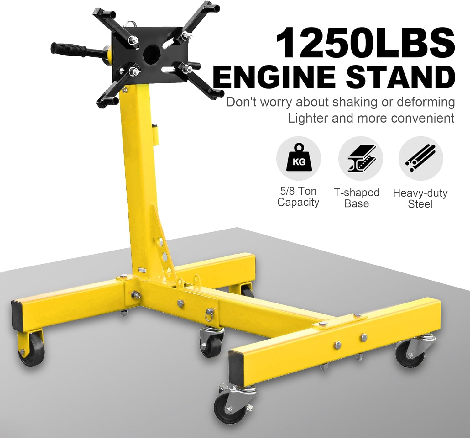 YELLOW JACKET Engine Stand, Rotating Motor Stand with Foldable Frame Adjustable Arms Lockable Swivel Casters, Heavy Duty Steel Engine Lift Stand for Garage Shop, 3/4 Ton (1,500 lb) Capacity