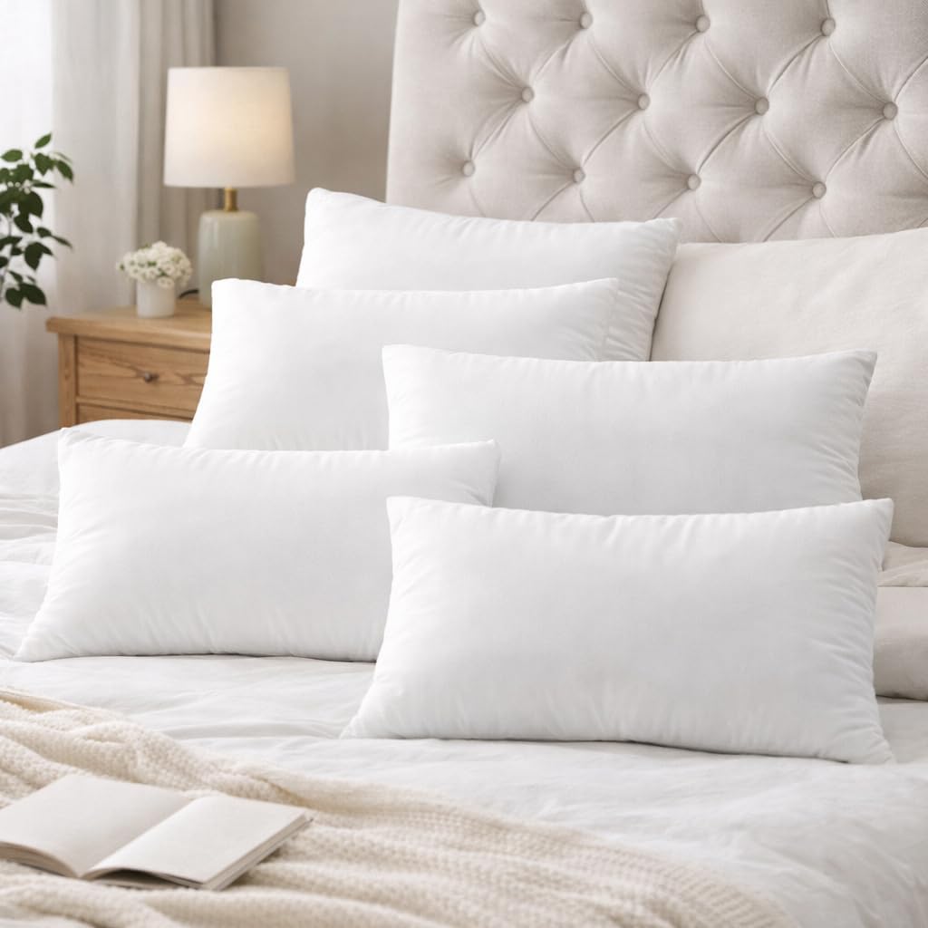 These rectangular pillow inserts are made for customers who want a clean, simple look without excessive firmness. The polyester filling is evenly placed to help the insert maintain its shape inside lumbar pillow covers.