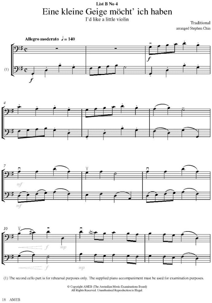 AMEB Cello Series 2 Book Preliminary Grade carefully selected by top Australian Cello performers and pedagogues, the grade books feature a diversity of musical styles and often include works by celebrated Australian composers. The repertoire is carefully coordinated to meet the technical requirements at every level. Includes piano accompaniment.