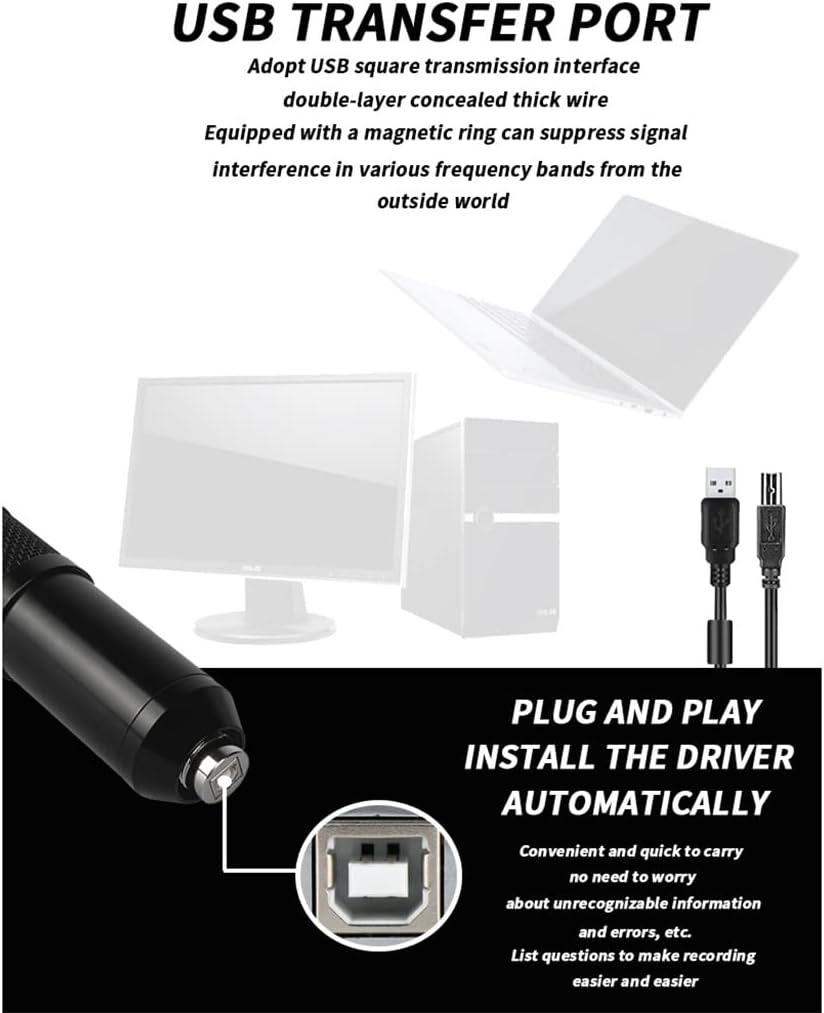 All-metal body, anti-interference overall appearance, streamlined design to make the structure more solid, the surface is made of baking varnish, it will not fade after long-term use. The bass is full, the treble is clear and loud, the high-fidelity HIFI output restores the real and natural listening in the concert, and the studio-level experience. It adopts USB square transmission interface, double-layer concealed thick wire, equipped with magnetic ring to suppress signal, interference from different frequency bands to the outside world. Plug and play, automatic driver installation, convenient and quick to carry, don't worry Regarding unrecognized information and errors, etc. Suitable for various scenarios. Notice: 1. Due to manual measurement, please allow 2-3% error. Before you bid, make sure you don't mind. 2. The color may vary from different monitors, please refer to the actual product. The color may vary from different monitors, please refer to the actual product.