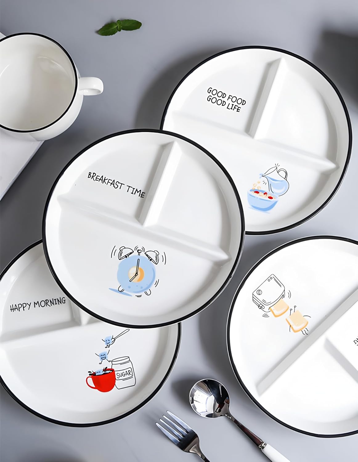 Product Description The ceramic divider plate is elegantly designed with a fine texture that adds a touch of sophistication and style. The base of the ceramic jar is unglazed to ensure a more secure and safe placement without compromising the beauty and functionality of the product. Ceramic compartmentalised plates are classically beautiful, sturdy, practical, reusable and environmentally friendly. The simple colours give a soothing and relaxing visual aesthetic, making it an excellent choice for decoration in addition to normal use. Product Specifications Material: Ceramic Colour: White Style: Modern Minimalist Size: 21 x 2.5 cm / 8.27 x 0.98 inch Product weight: 700 g Packaging weight: 900 g Packing List: 1 x Ceramic Divided Plate Care instructions: During the cleaning process, if the storage jar is stained with liquid spots and tea stains, you can choose to gently wipe it with a clean soft cloth dipped in toothpaste. Ceramic products are fragile and need to be protected from dropping from a height when in use. Please use a soft cloth to wipe, because hard objects will leave scratches if you wipe hard, please do not use metal brushes, steel wire balls and other hard objects to wipe.