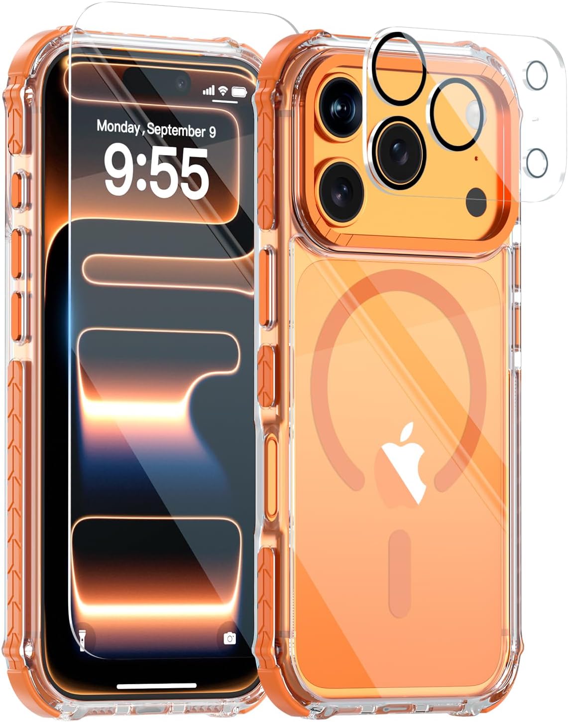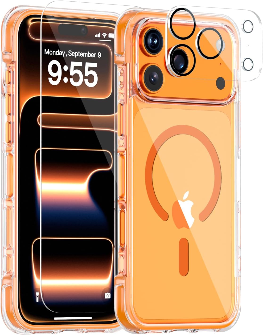 The Yunjews for iPhone 17 pro Max Case is crafted to provide robust protection while showcasing your phone’s original design. Exclusively designed for the iPhone 17, this case comes with 2 pieces of tempered glass for additional screen protection. Its transparent design ensures the true color of your phone is clearly visible. The built-in strong magnetic ring is compatible with MagSafe, allowing for secure attachment and fast wireless charging. Constructed with military-grade shockproof technology, this case is perfect for safeguarding your iPhone 17 pro Max against drops and impacts, making it an ideal choice for daily use, travel, and work.