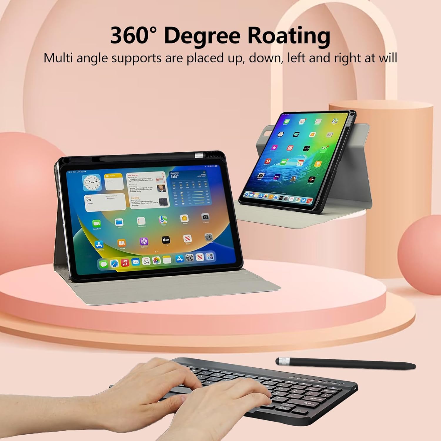 ❤ Compatibility: ➢ This Keyboard Tablet Case Designed for Samsung Galaxy Tab S9 FE Plus 5G/Galaxy Tab S9 Plus 5G 12.4 inch 2023 Release (Model:SM-X810/X816B/X818U/X610/X616B) ➣ Not fit for any other tablets ❤ Stylus Pen and Pen Slot Design ➢ Stylus Pen with Dual Durable rubber tips in different sizes to meet various user needs ➣ Side-Position Pen Holder securely grips holds your pen, allowing for easy one-handed placement and removal ❤ Detachable Wireless Keyboard Feature 1.Full Shortcut keys for convenient daily use 2.Support 3 Systems (for iOS/Android/Windows) 3.Magnetical Design Easy installation and removal 4.Perfect Key Spacing Short bond distance,efficient typing 5.Scissor key structure provides Good resilience comfortable typing experience ❤ 360 Rotating Degree Stand ➢ for Samsung Galaxy Tab S9 Plus Case Support Vertically and Horizontally Viewing Angles ➣ Free Your Hands,.three anti-slip grooves can set up multiple stand angles stably to reach your most comfortable viewing or typing ❤ Comprehensive Protection ➢ for Galaxy Tab S9 FE Plus Case with High-quality pu leather and soft tpu interior provide 360-degree protection for Tablet ➣ 4 angles are protected by thickened convex edges protecting it from damage caused by impacts, drops and scratches ❤ Keyboard How to Connect ❥ Please charge your keyboard first time you use ➫ Press the "Connect" button to turn on the Bluetooth of the keyboard ➬ Turn on the Bluetooth of tablet ➫ Find and select "Bluetooth 3.0 keyboard". click it,connection is complete ❥ When use it for second: Just turn on your tablet Bluetooth and keyboard.press any key on the keyboard. It will automatically connect ❤ Package includes: ➬ 1 x for Samsung Galaxy Tab S9 FE Plus Case ➫ 1 x USB Cable ➬ 1 x Stylus Pen ➫ 1 x Detachable Keyboard