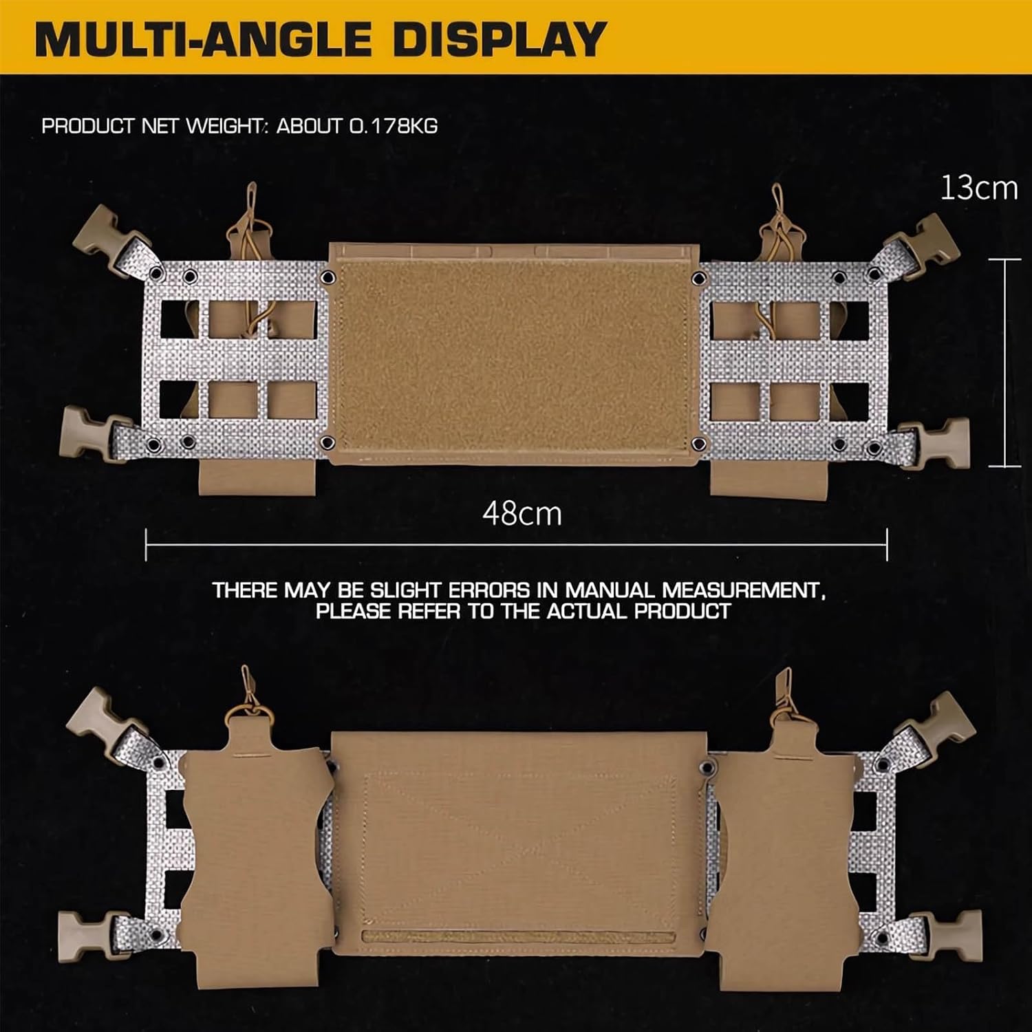 Product Color: Black , Brown , Gray , GreenMain Material: NylonScope of Application: Attaches to compatible vest, packs, or carriers; ideal for organizing small items during hiking, camping, photography, travel, or general outdoor adventuresMounting Type: Webbing Loop Attachment (compatible with standard straps or surfaces)Weight: Lightweight design (minimal added weight)Features:Durable nylon for reliable strength and wear resistanceFull webbing panel for versatile pouch/case mountingQuick and secure locking installationEnhanced stability to prevent shifting during movementPractical organization for tools, accessories, or small itemsProduct Includes:1 × Webbing Panel Accessory Attachment