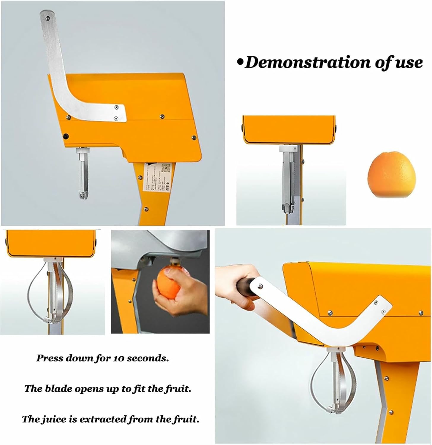 Product Features:1. Comes with a user-friendly manual for seamless operation of the juicer.2. Crafted with exceptional workmanship, featuring robust hardness and a solid structure for enhanced durability.3. Specifically designed for optimal juice extraction from juicy fruits like oranges, lemons, and pomegranates.4. Guarantees superior taste and quality, ensuring safe usage.5. Effortlessly convenient to clean for quick maintenance.Product Specifications:Name: Fresh JuicerVoltage/Frequency: AC 100~240V 50/60Hz DC24VPower Cord Length: ≥ 1.6mPower Consumption: 45WMain Material: Metal, Stainless SteelTotal Weight: 9kgDimensions: 205*285*565mm