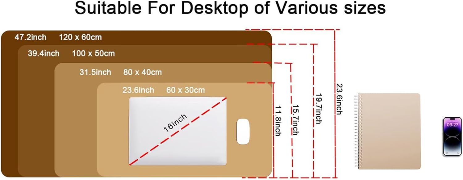 Material: Microfiber weave cloth Surface& rubber baseSize: 31.5x15.7 inch / 800x400 mmThickness: 0.12inch(3mm)Package Contents: 1 x large gaming mouse padMicrofiber Weave Cloth SurfaceThe high-density weave ensures your mouse glides effortlessly across the mat, allowing for fast, smooth gliding operation, increasing your mouse's precision and accuracy, ensuring optimal performance for gaming and work.Long-lasting Stitched Edges0.12inch(3mm) thick with stitched edges for enhanced durability to withstand the wear and tear for extended use.Non-Slip Rubber BaseThis gaming mouse pads is made of soft, dense rubber with non-slip grooves and textures on the bottom to ensure the pad is secure and stable during intense gaming, designing or typing.WashableEasy to clean, it will not fade even after repeated washing, and even liquid stains can be washed off with water and continue to be used.Perfect GiftOur gaming mousepad big is also fine desktop decorations, which is the best gift for your families or friends on Thanksgiving, Christmas, Halloween, Easter, New Year or other holidays. You can choose the most suitable mouse mat for you and your friend who loves gaming.
