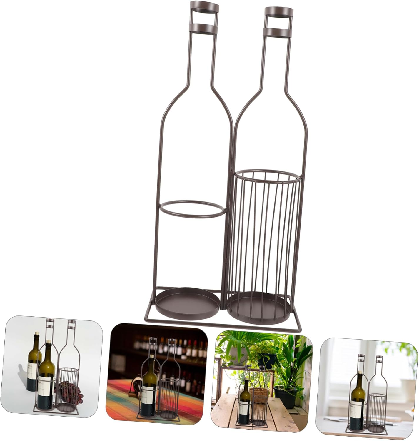 Package List 1 × Wine Bottle Holder Characteristics -Color:Coffee Wine Rack Iron -Material:Iron Iron Wine Holder - interior decoration: parties, restaurants, cabinets, bars, kitchens, dining tables, etc rack. -Size:43.50X21.50X12.70cm/17.10X8.45X4.99in wine -This storage rack has two grids, one can be used as a wine cork holder, and the other can hold or display the wine bottle container. - workmanship, made of sturdy iron material, and for use racks. -Simple and modern style design, this single wine bottle holder can display your wine more completely Modern Wine Stand. -The edges are smooth and round, without burrs, and this wine bottle holder will not damage the skin black.Goods DescriptionWine Display Holders Are you looking for a professional but wine holder? Are you looking for a sturdy, trustworthy tool that can do multiple tasks at the same time? If so, then you must take a look at our wine bottle holder, as well as wine cork holder, which can meet your needs