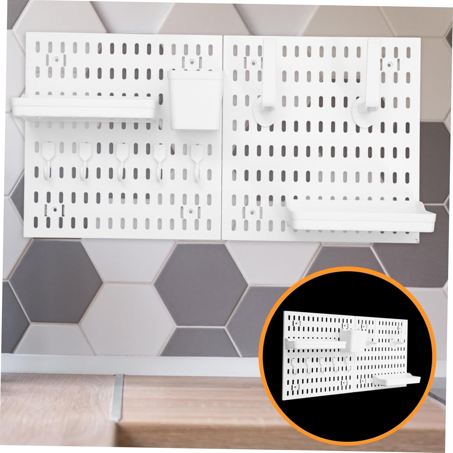 Package Include 2 x Pegboards 1 x Storage Holder 2 x Shelves 5 x Hooks 2 x Big Hooks Characteristics -Material:Plastic pegboard -Size:30.00X30.00X1.00cm/11.79X11.79X0.39in pegboard wall -Color:White pegboard for wall - Useful and , made of plastic material, and , display pegboard is to use door back organizer. - Multi-functional, wall mounted pegboard with hooks could be used for kitchen, bathroom, living room and other places for easy storage of items wall organizer. - The appearance is simple and stylish, suitable for various , easily meet your demands pegboard display stand for craft shows. - No drilling installation, adopting wall-mounted design, simple to install and use, save space and effort wall pegboard for bathroom. - Pegboard and hooks could be used for hanging towels, other small items, convenient and to use wall mount display pegboard.Goods Descriptionwall mount pegboard It is one of for you.wall mounted pegboard Are you looking for professional and wall mounted pegboard? Are you in search of sturdy, trustworthy wall mounted pegboard for storage use? If yes, look no further! Our wall mounted pegboard with hooks must meet your needs