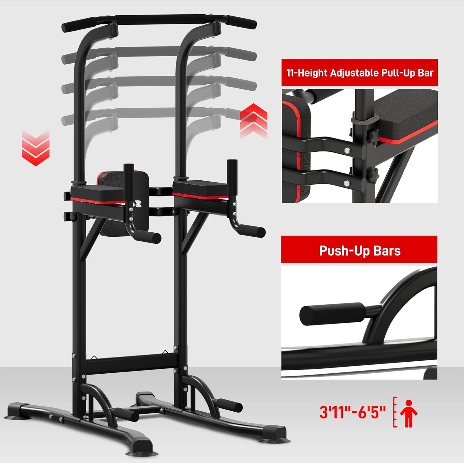 Outdoor Basic Power Tower, Pull Up Bar and Dip Station for Home Gym, 1400LBS Weight Capacity, Adjustable Height, Heavy Duty Steel Frame for Calisthenics, Strength Training Fitness Equipment