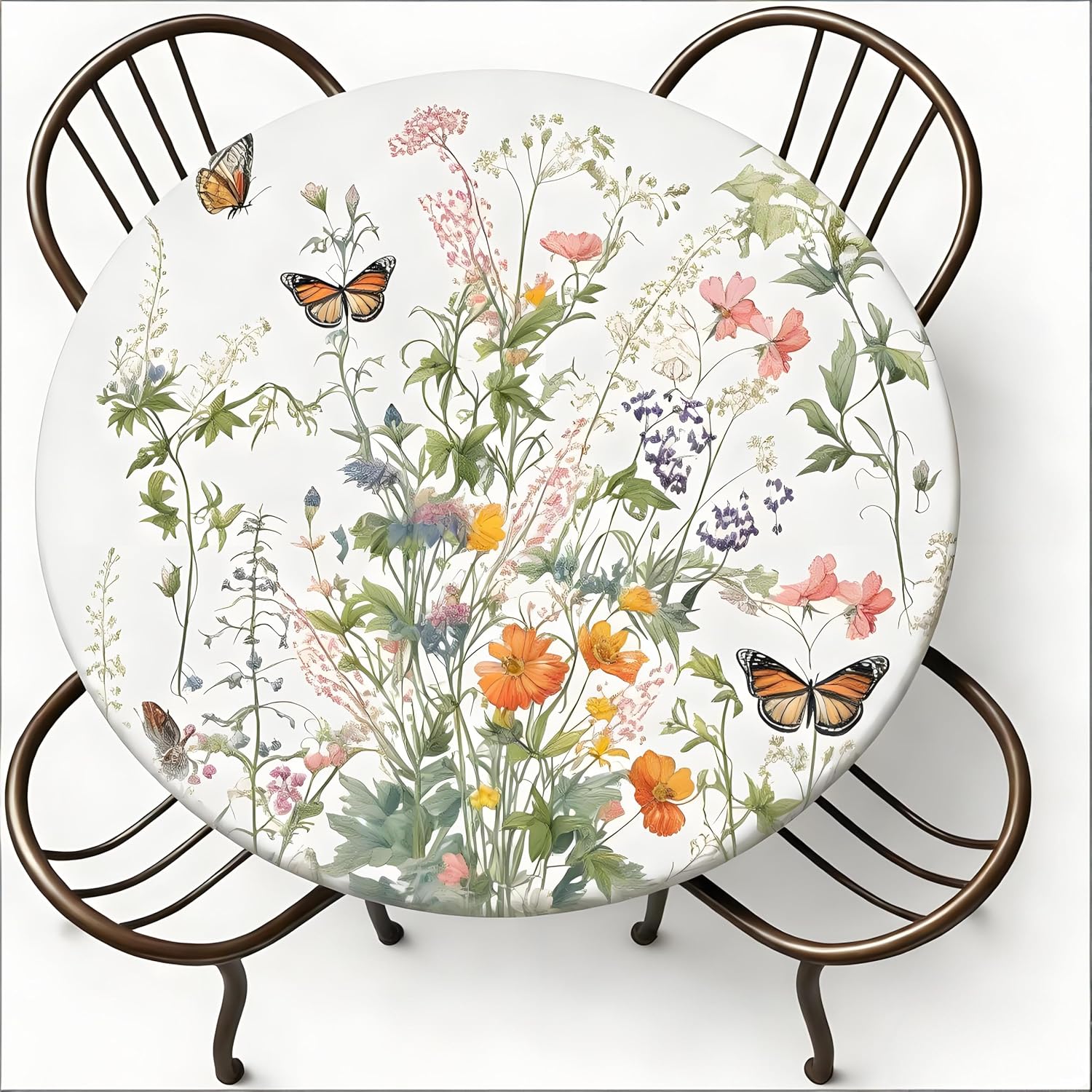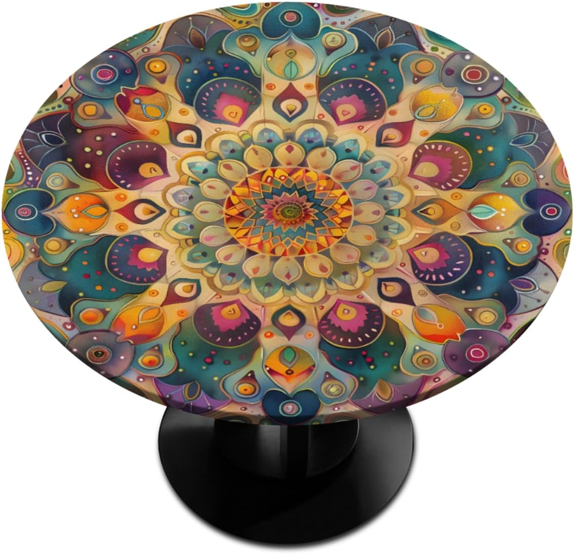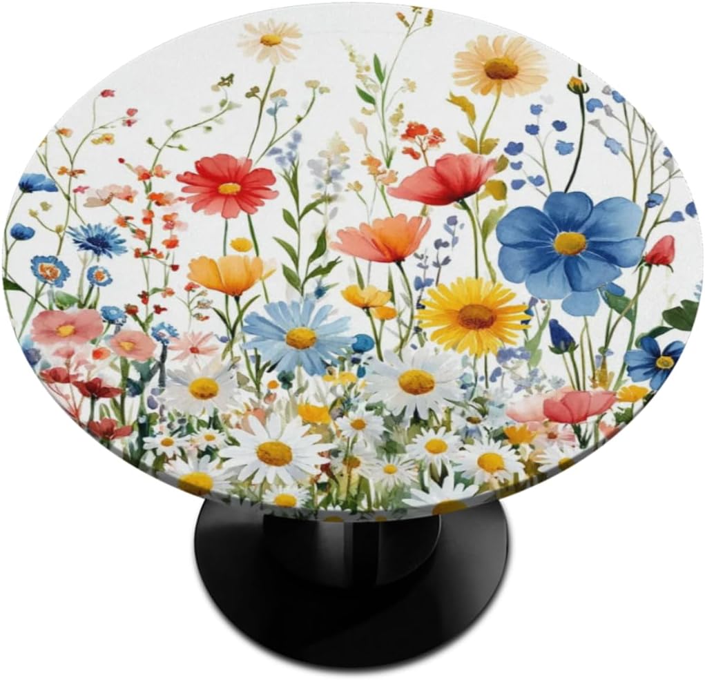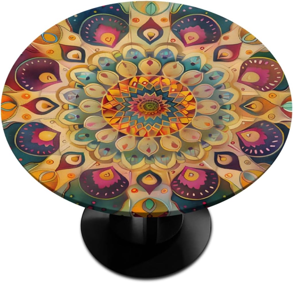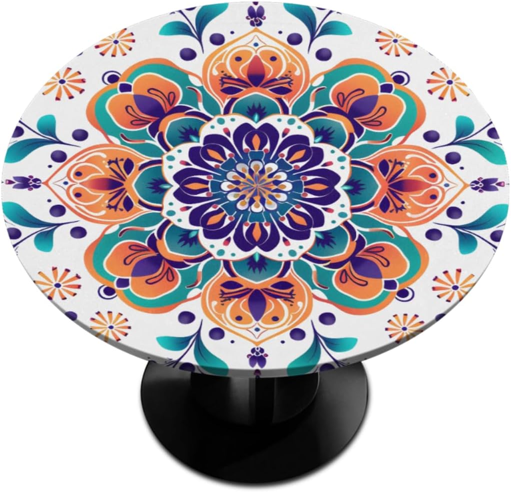 Round Fitted Tablecloth with Elastic Edge Size: Fits any round table with a diameter of 45-56 inches. Fitted table cover effectively protects your table and makes it last longer. The elastic edge design can effectively fix the tablecloth on the dinner table, ensuring that the tablecloth will not fall off due to pulling and wind. Great for families with young children as you can no longer have to worry about them pulling the table down. The surface is smooth, and oil stains and food residues can be easily removed with a damp cloth, saving you time for household chores after meals. The round table cloth is made of fade-resistant, tear-resistant polyester fabric to avoid scratches or burns on the table from cutlery, dinner plates and hot pans. Great Gift: Tablecloths with elegant and unique prints are great as holiday gifts for your friends or family, perfect for Christmas, Halloween, Easter, housewarming, visiting gifts, wedding gifts, birthday gifts .