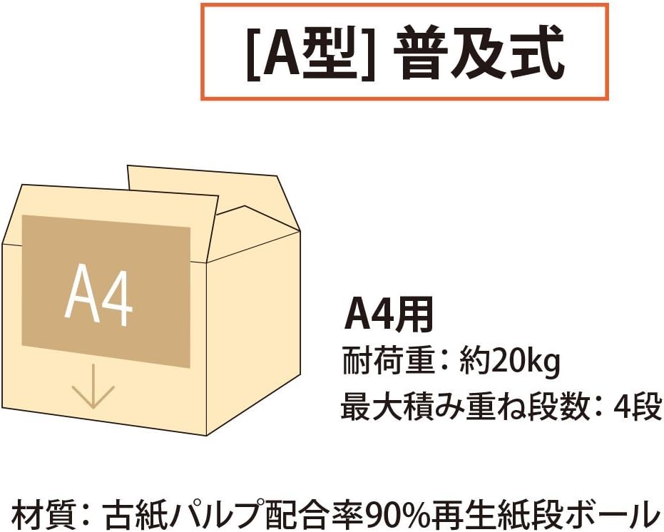 One-touch buildable cardboard for storage and organization Features: Storage box for organizing and storing documents and things. The bottom can be assembled with one touch. The load capacity is 44.1 lbs (20 kg), and can be stored up to 4 levels, so you can organize large amounts of documents. Made with recycled cardboard with a 90% post-consumer pulp blend rate for the environment. Green Purchasing Law Compliant
