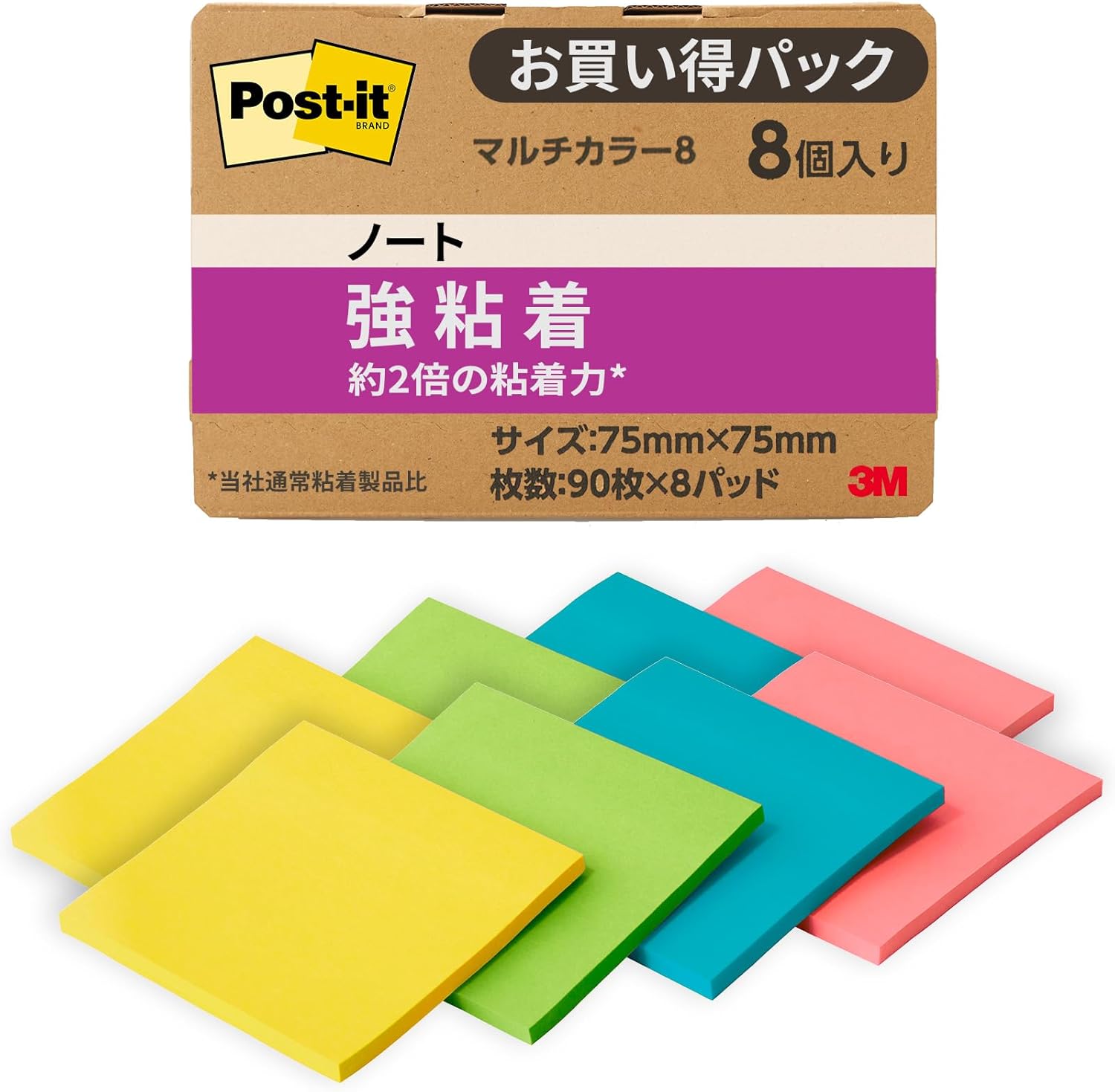 "Color your story" Post-it color variations make every day vivid and enjoy your work or daily life more enjoyable and efficient. Approximately twice the adhesion of the adhesive force* makes it stick firmly on vertical surfaces and can be repeatedly applied and removed *Post-it is a set of 4 colorful colors compared to regular adhesive products, so you can identify colors and highlight the writing area. Color: Iris Infusion, Positively Pink, Tropical Pink, Pink; Size: 3.0 x 3.0 inches (75 x 75 mm); Number of Sheets: 90 sheets x 8 pads.