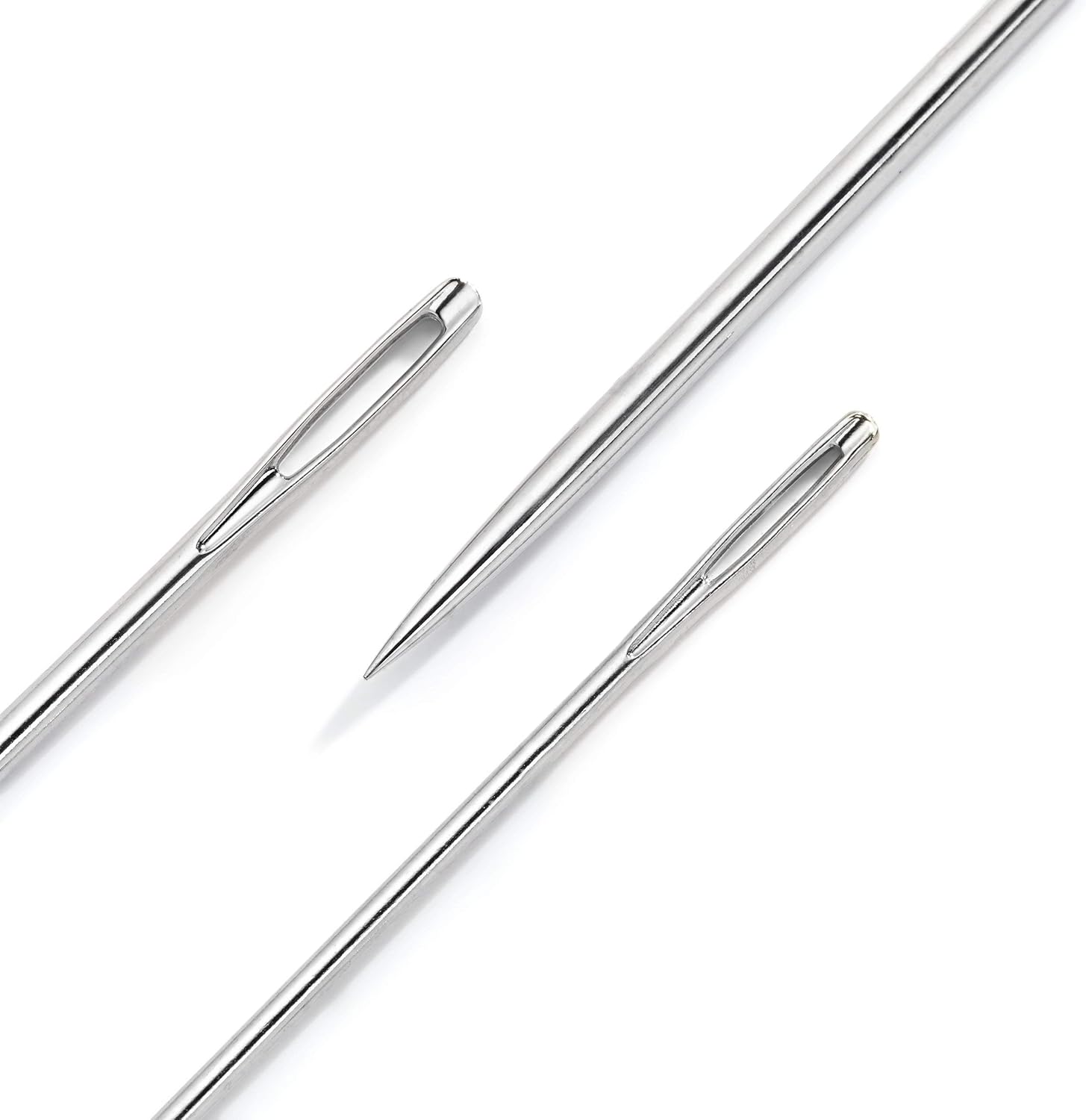 Product Description The hardened steel darning needles range offers short needles for darning woolen clothes and socks as well as long needles for fine darning jobs. The needles have a conical shape and go thinner from a sewing needle, but are much larger and therefore have a proportionally larger eye. This also allows the threading of stable yarns and wool. The surface of darning needles is coated without burrs and corrosion resistant. It makes it easy to insert the needle through the material. Prym has these long and short darning needles in two matching sets with 6 or 10 high quality needles. Short needles are also available in packs of 25 pieces. Set Contains: 6 x Silver Needles