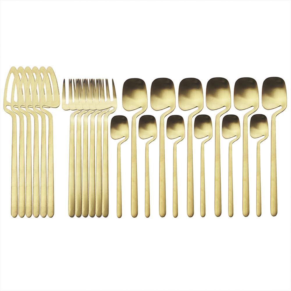 Stand out rainbow tableware sets for your dining is here ! FEATURES: Made of High Quality Stainless steel. Strong Anti Rust. Adopting high quality food safety material,poisonless and tasteless Elegant design,simple and moden Durable strong construction that will last for years. Well-balanced to fit securely in your hand, fit well in your hand. Heat-resistant, won't bend and dishwasher safe. Luxury Matte polished Package: Dinner Knife * 6 (27cm 30g) Main Fork * 6( 19cm 40g) Main Spoon * 6( 19cm 30g) Teaspoon * 6( 14cm + 20g) Buy one set, enough for your whole family ! Comes with safty and good package