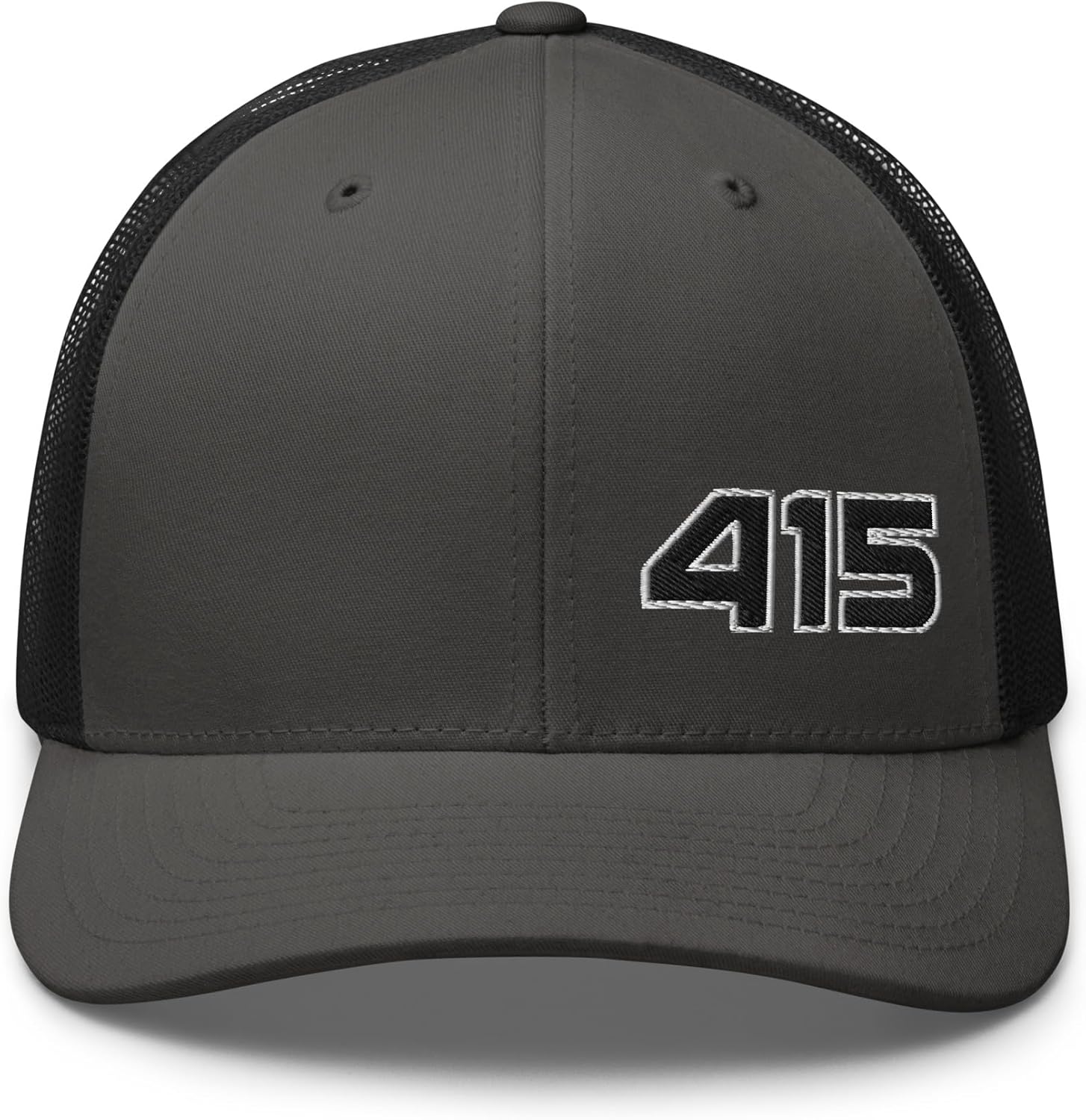 A subtle and stylish way to express your San Francisco pride, this San Francisco 415 trucker hat includes a minimal San Francisco 415 area code design with mid-profile, 6-panel construction and an adjustable mesh back. Available in a variety of color options, it's excellent choice for anyone who is from San Francisco, CA or loves The City by the Bay. Mid-profile, structured 6-panel San Francisco hat60% cotton, 40% polyesterHard buckram front panels w/ mesh backPermacurv visor, matching undervisorPlastic snap closureHead circumference: 21 ⅝” – 23 ⅝”Type: San Francisco 415 hat, San Francisco trucker capEmbroidered in the USASan Francisco GoTime Apparel