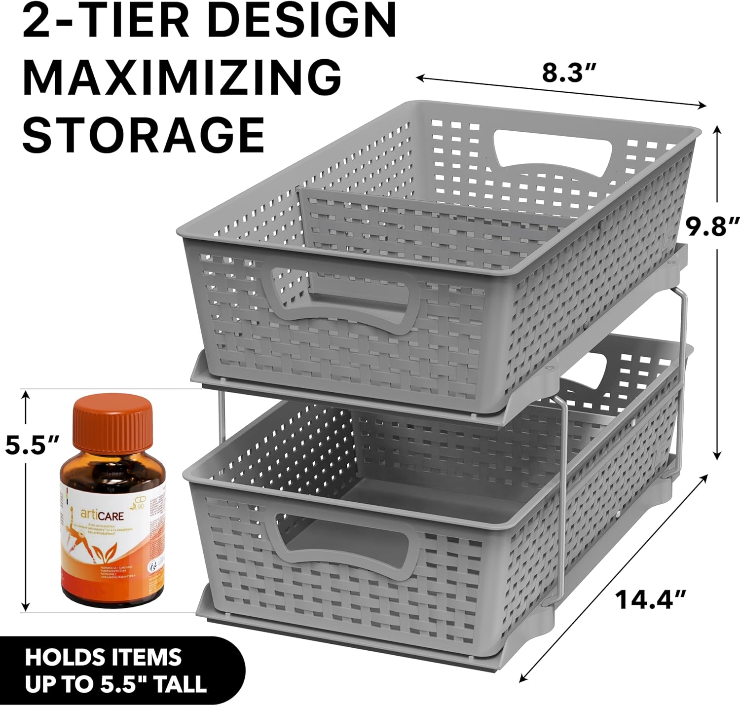 | Special Feature | 2-tier Sliding Organizer with Adjustable Dividers, Durable Weave Design/For Lightweight Items, Lift-out Baskets/Anti-Slip Base |