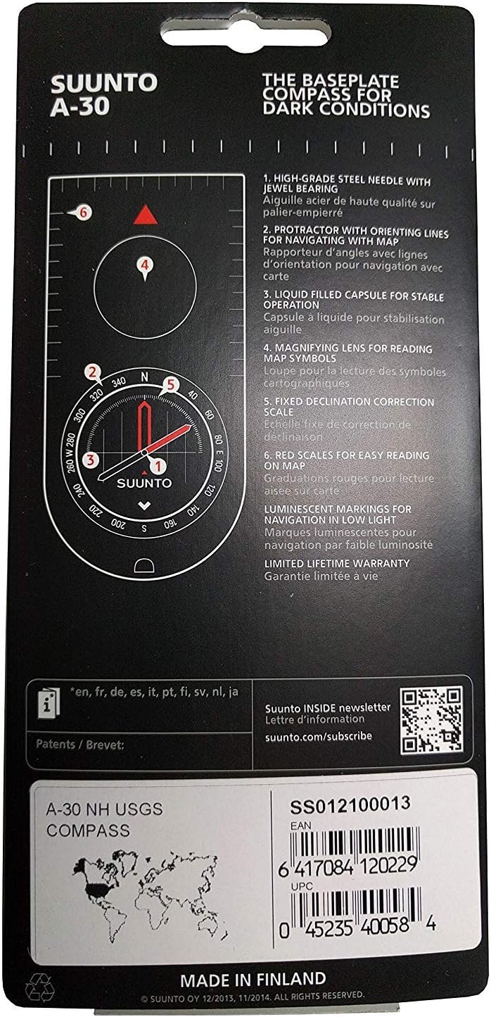 | Included Components | Suunto A-30 NH USGS Compass, lanyard, Quickrelease, Quick Guide |