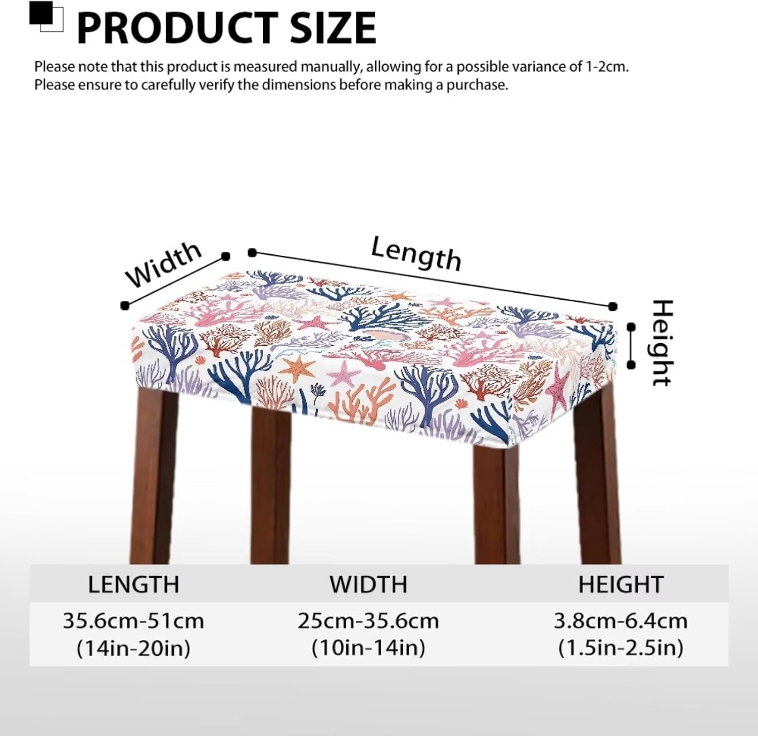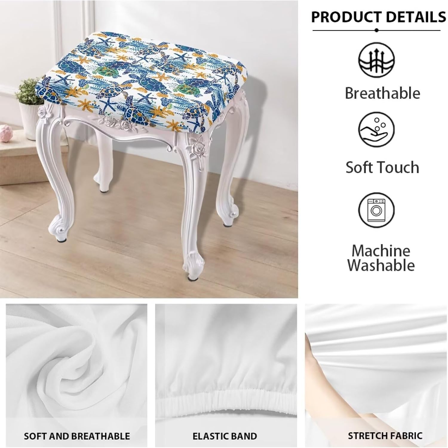 Elevate your home decor with our Stool Covers Rectangular, designed for both style and functionality. Made from high-quality polyester, our Vanity Stool Cover is soft, comfortable, and durable, ensuring it withstands everyday use. The fade-resistant fabric and stretchy material provide a snug fit, while the secure elastic band keeps it in place, making maintenance effortless with machine washability. Our Bar Stool Slipcover fits a variety of stools, including rectangular and saddle stools, making it a versatile addition to your furniture. Measuring between 14"-20" in length, 10"-14" in width and 1.5"-2.5" in Height, these covers are perfect for standard-sized stools. Before purchasing, be sure to measure your stools to ensure optimal coverage and a tailored fit. Installation is a breeze! With an elastic band at the bottom, our Saddle Stool Cover is easy to put on and remove, providing an anti-slip fit that remains secure even with frequent use. Enjoy the convenience of transforming your stools in just minutes, enhancing your space without the hassle. Not only do these covers protect against spills, stains, and wear, but they also add an elegant touch to your home. The charming designs complement your existing decor, making them ideal for families, restaurants, and cafes. Plus, they are perfect for special occasions where you want to impress your guests. Versatile and stylish, our Vanity Chair Cover is perfect for a wide range of settings, from cozy homes to bustling bars and restaurants. Whether you're hosting a dinner party, decorating for a holiday, or simply refreshing your space, these stool covers are the perfect solution to elevate your decor while providing practical protection.